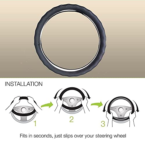Skidproof, stable, heat resistant Perfect decor for your car, also protect your steering wheel Better Grip / Drive Safer : Feel safe and comfortable while driving Protects finish and value: Keep your car looking new / hide existing wear Non-Slip Natural Rubber Surface