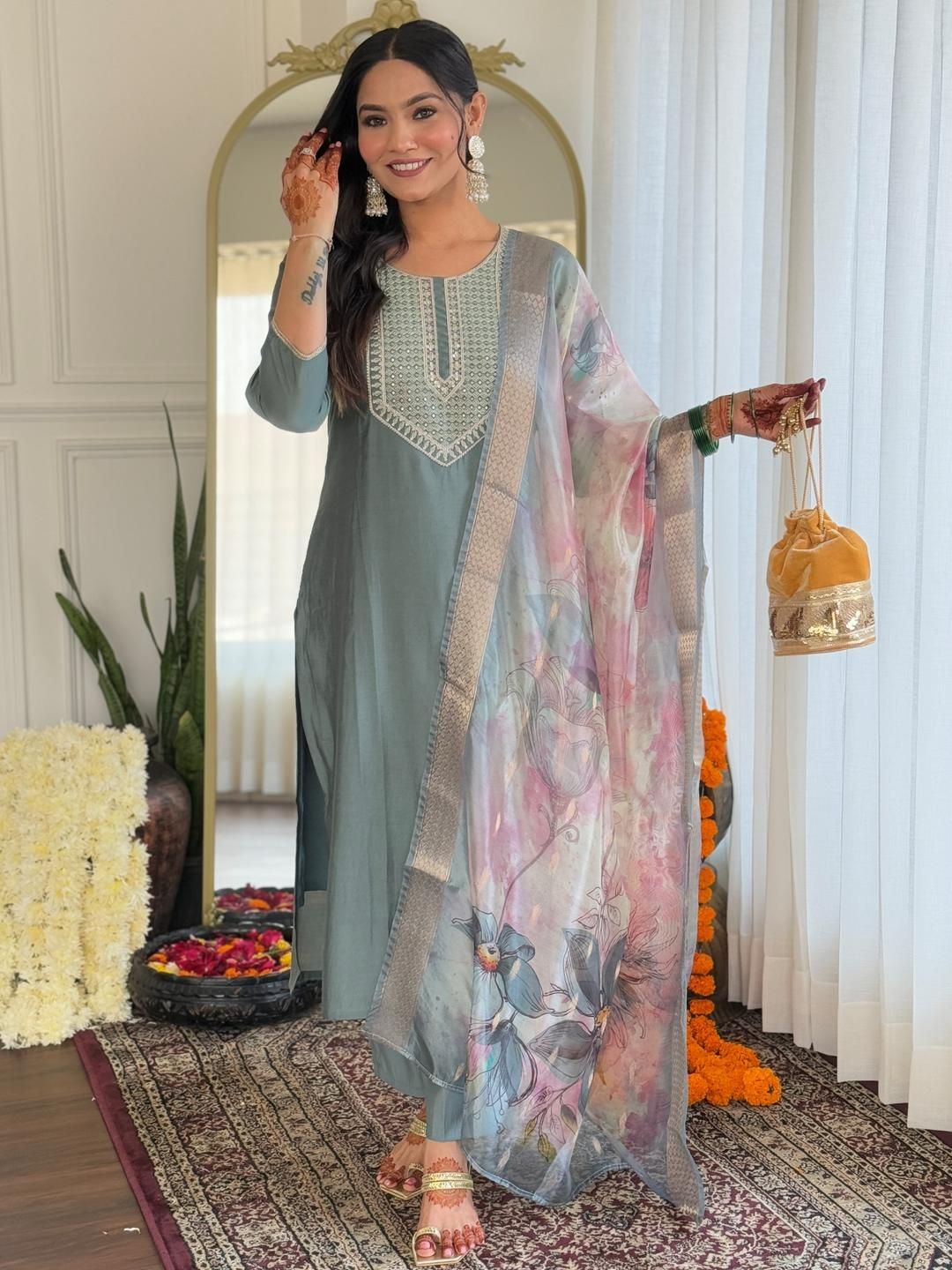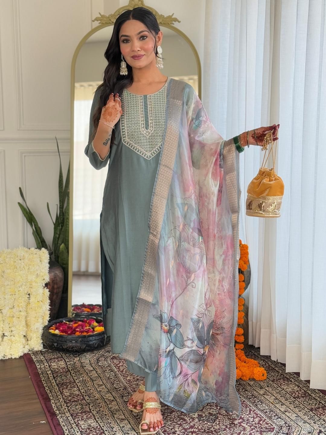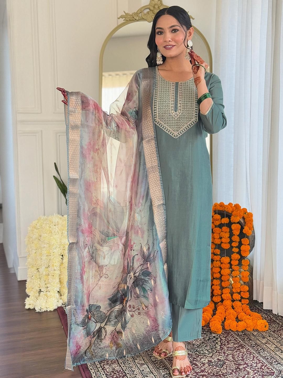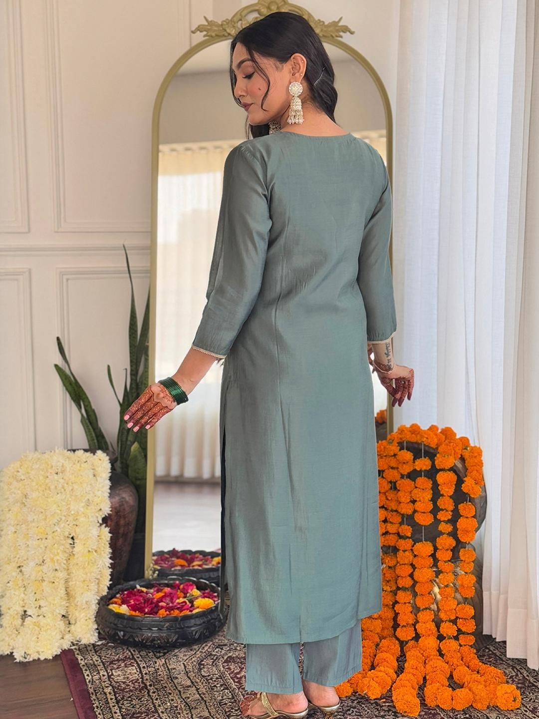 URMIR FASHION Green Viscose Rayon Kurta Sets