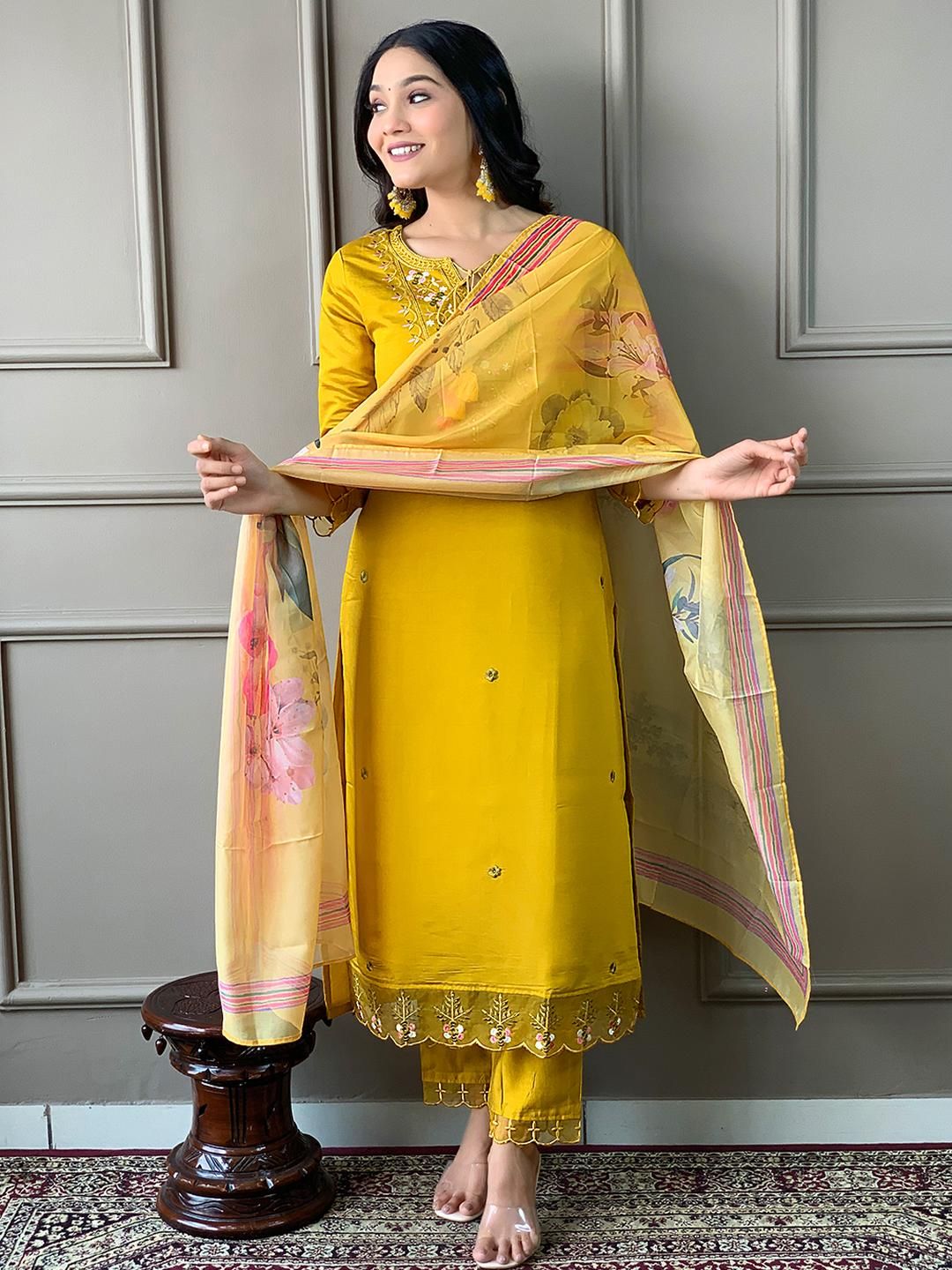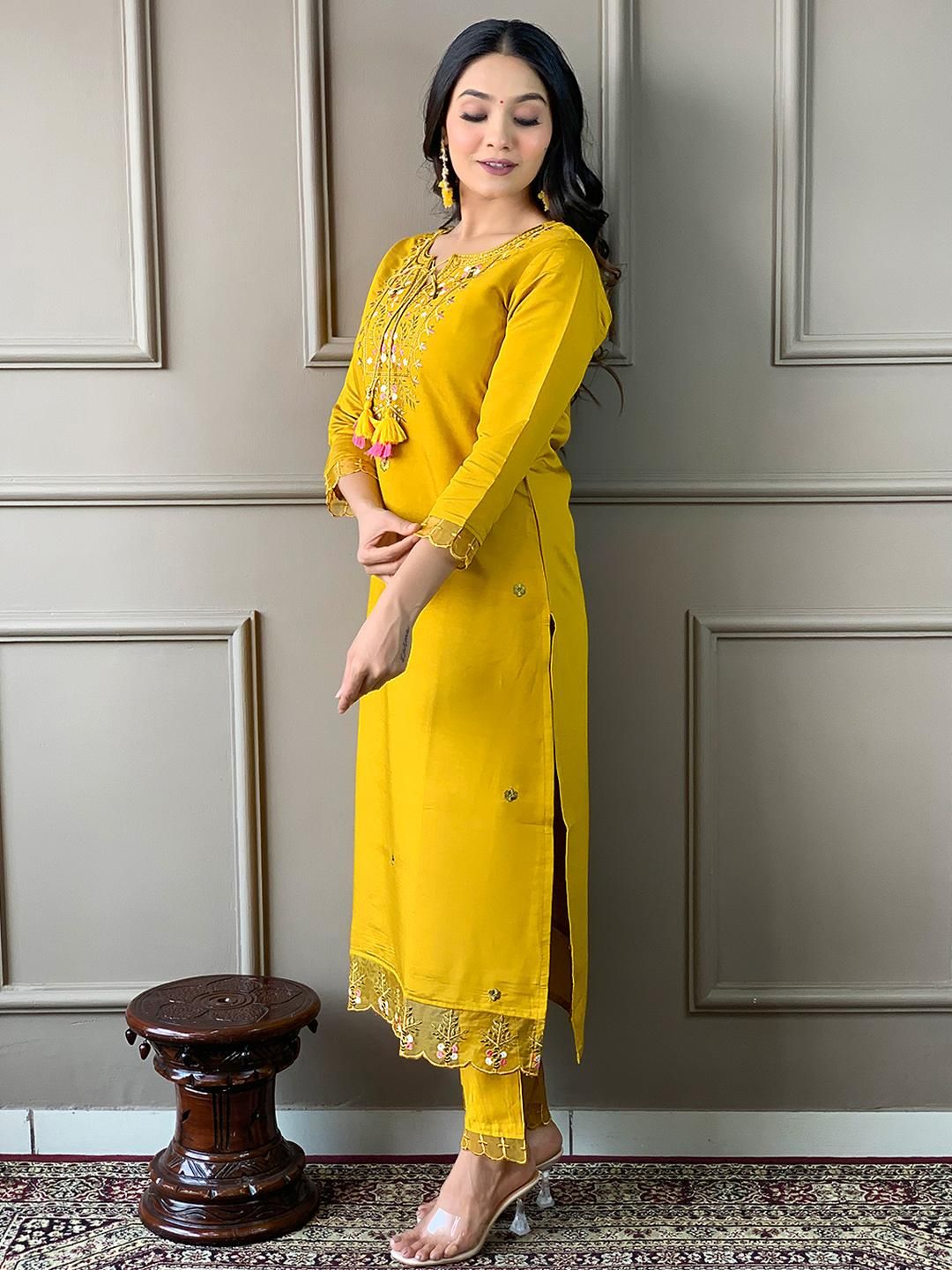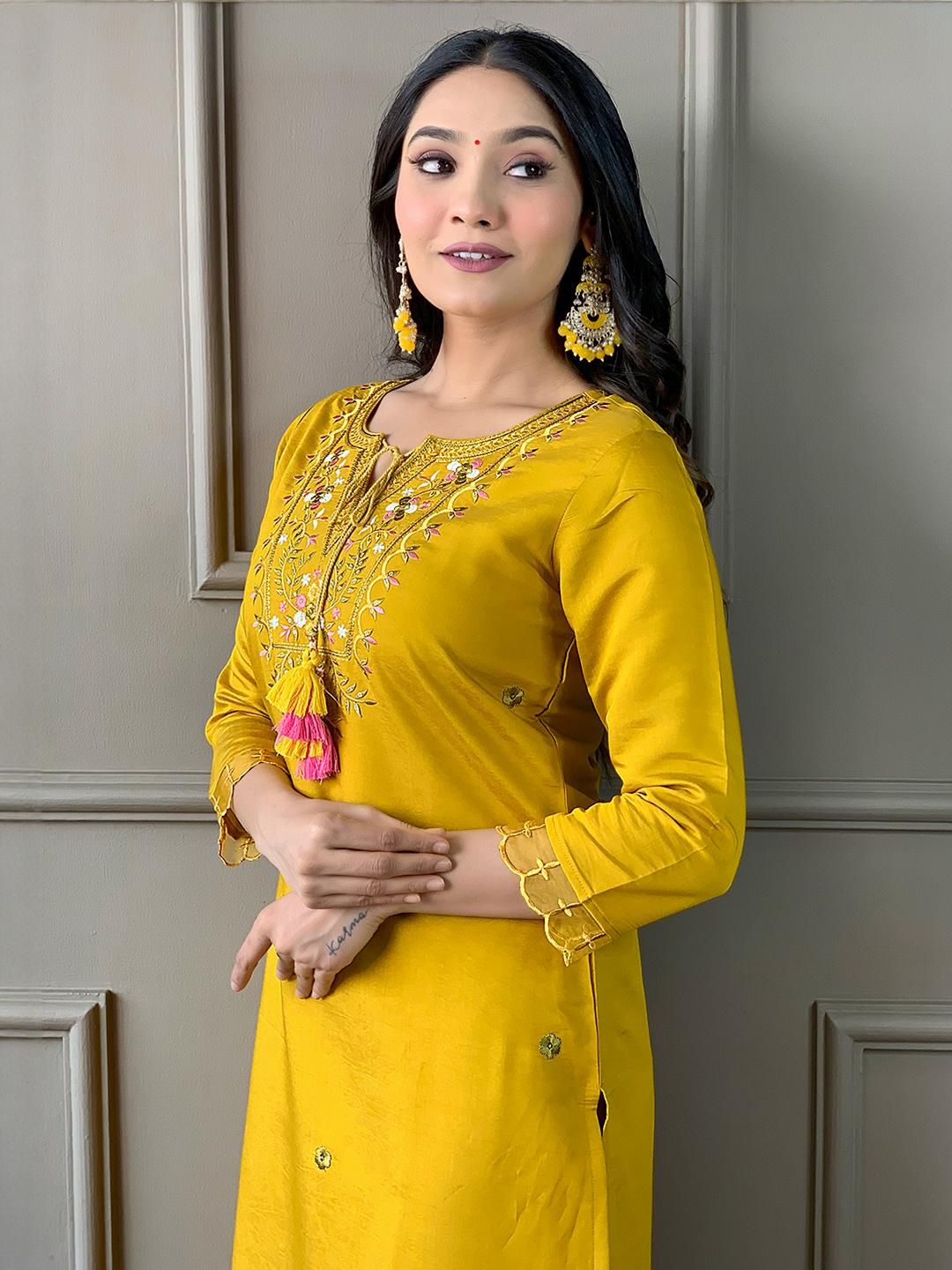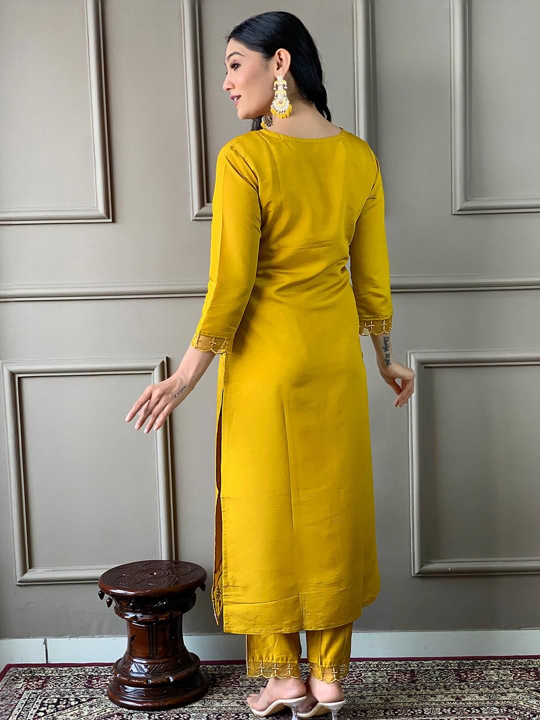 URMIR FASHION Mustard Chanderi Silk Kurta Sets