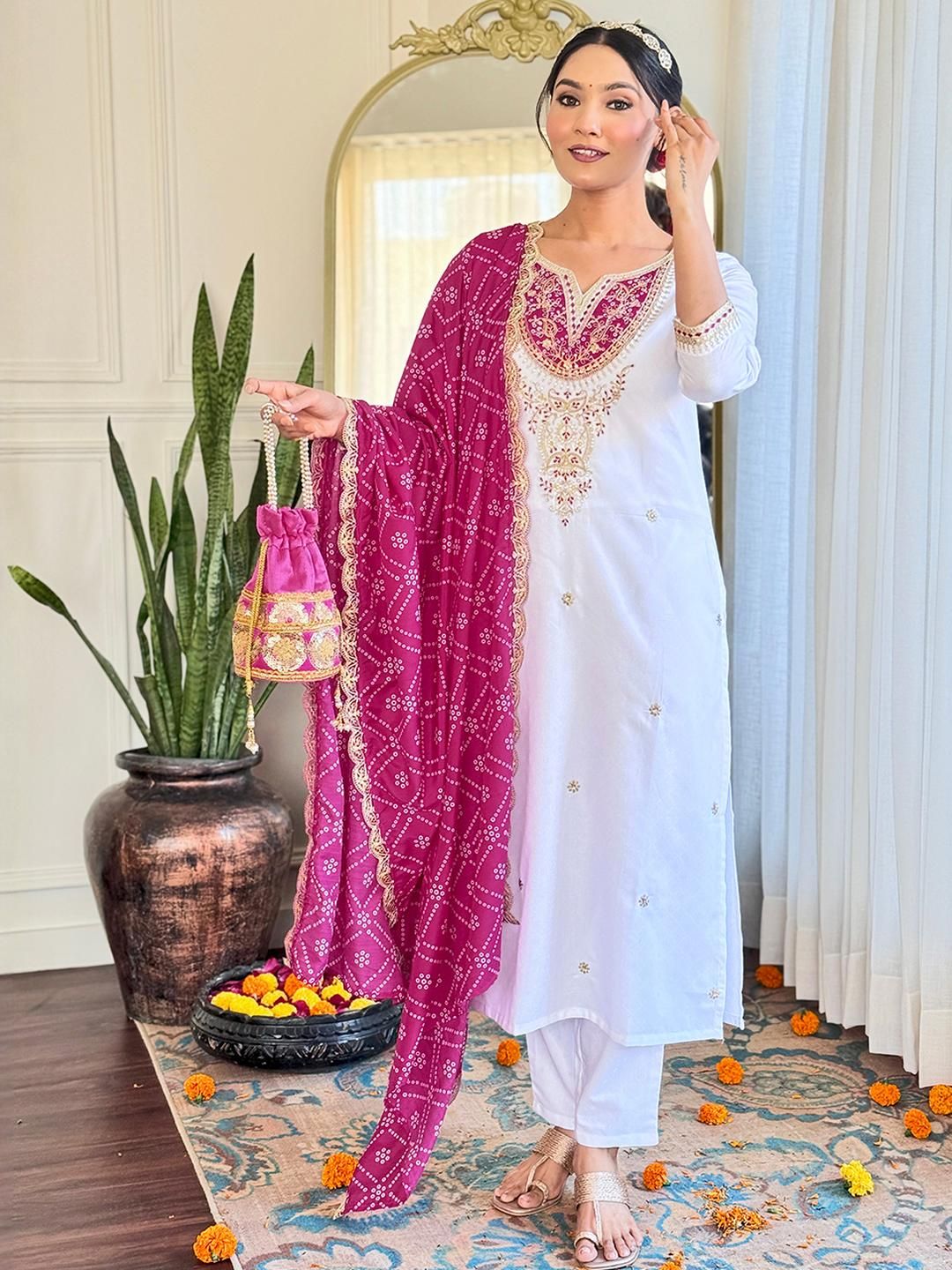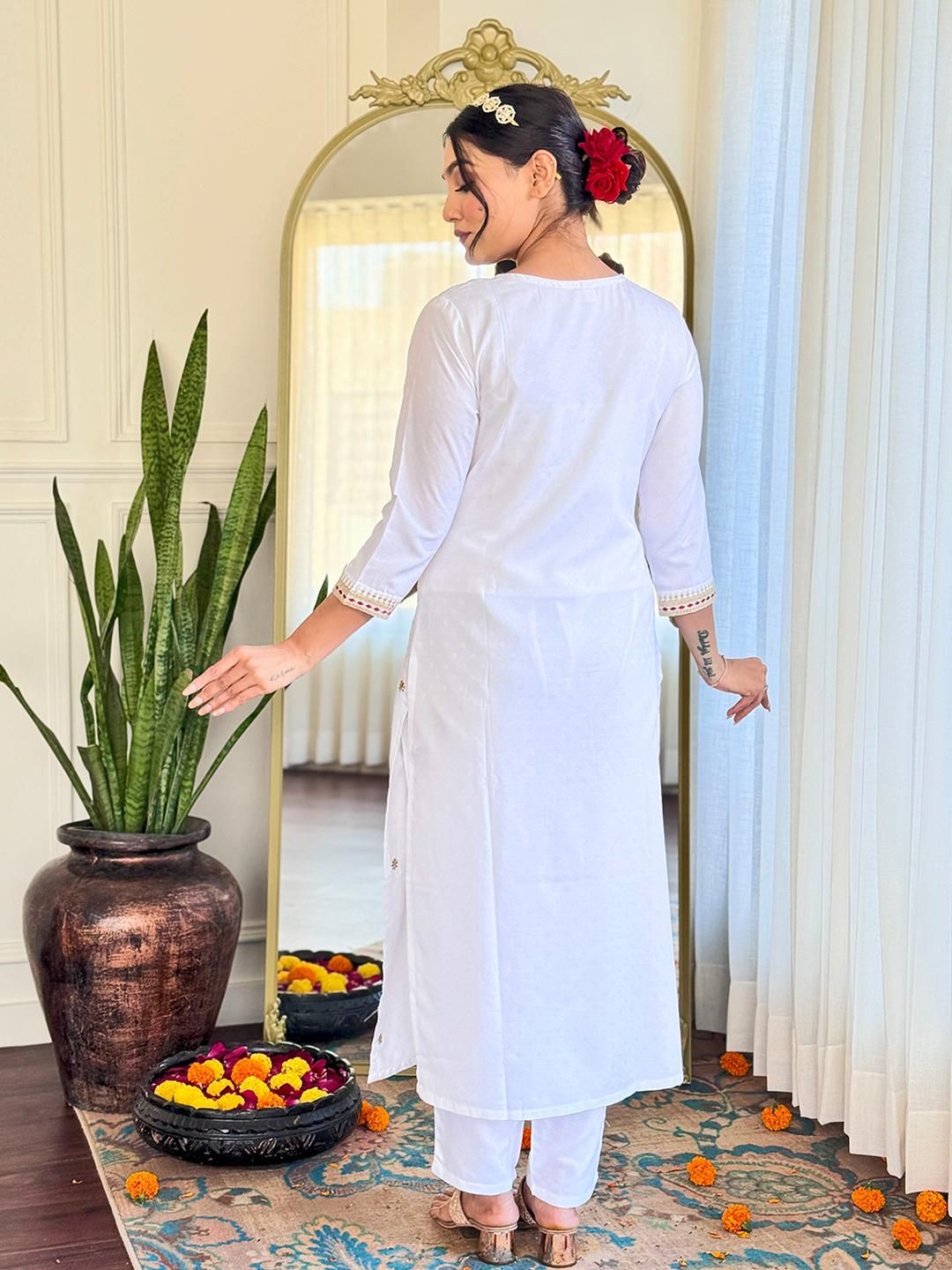 URMIR FASHION White Viscose Rayon Kurta Sets