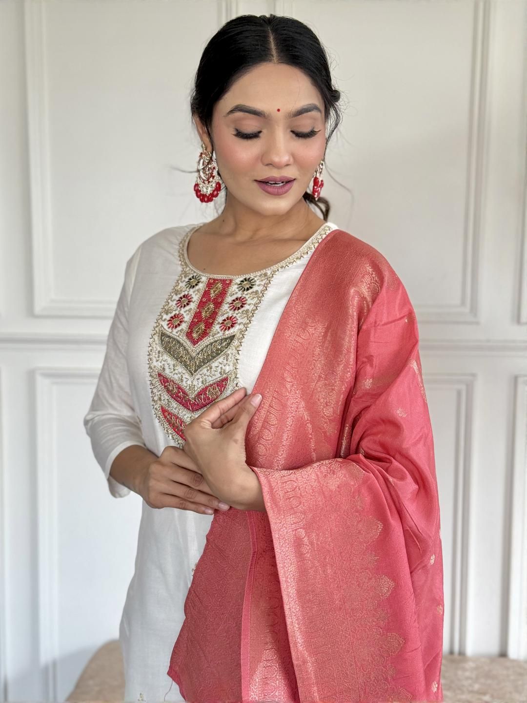 Buy this stylish URMIR FASHION Women Embroidered Regular Gotta Patti Kurta with Trousers And Dupatta at Marincart Nepal. This product offers great quality and value. Perfect for those looking for the latest trends in fashion. Get yours now at unbeatable prices.
