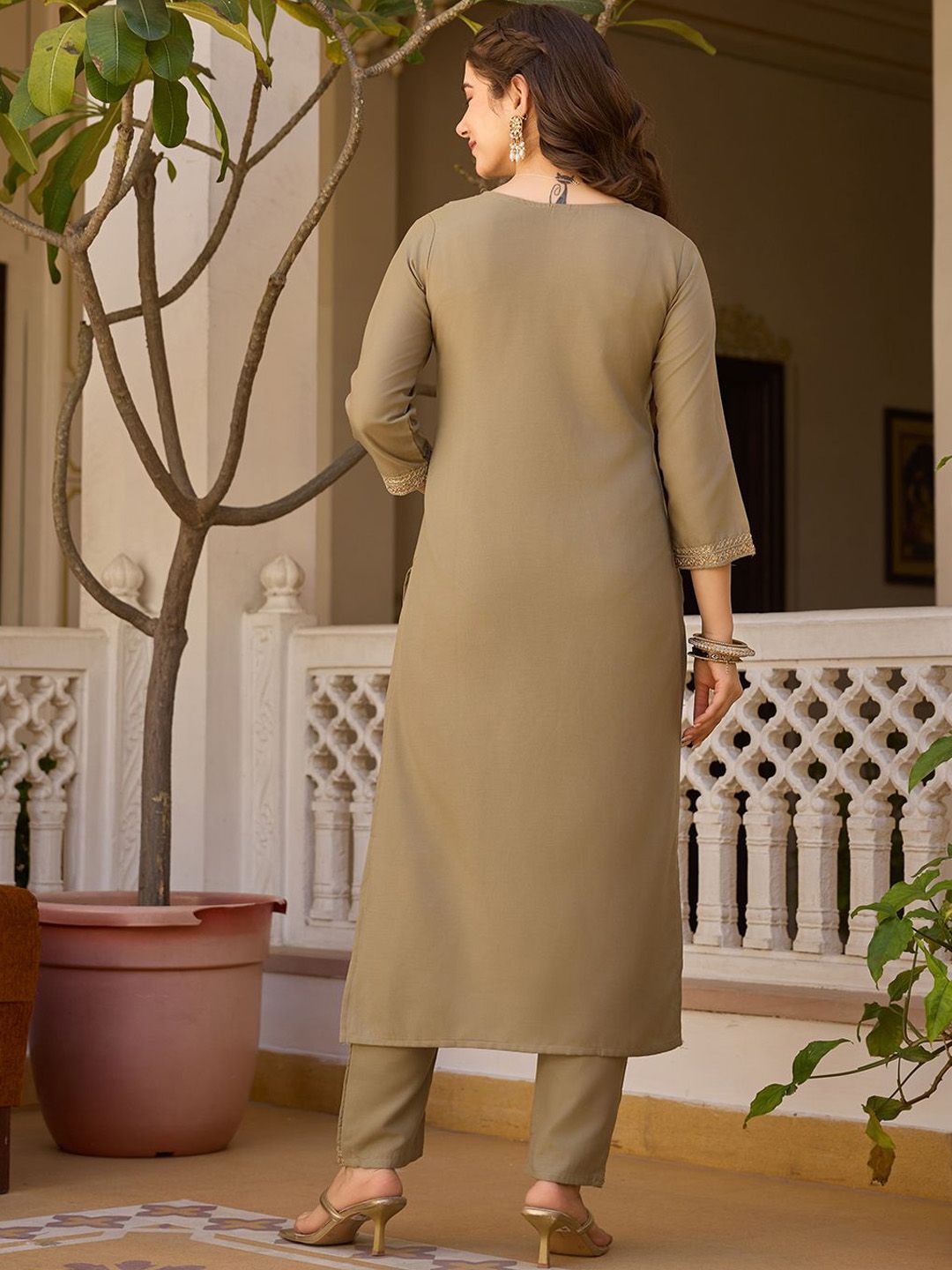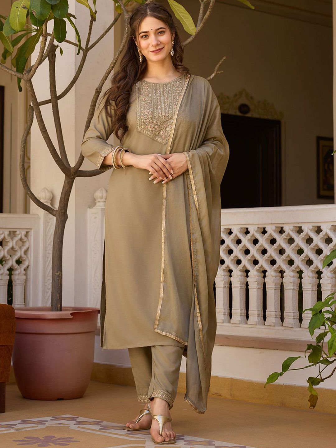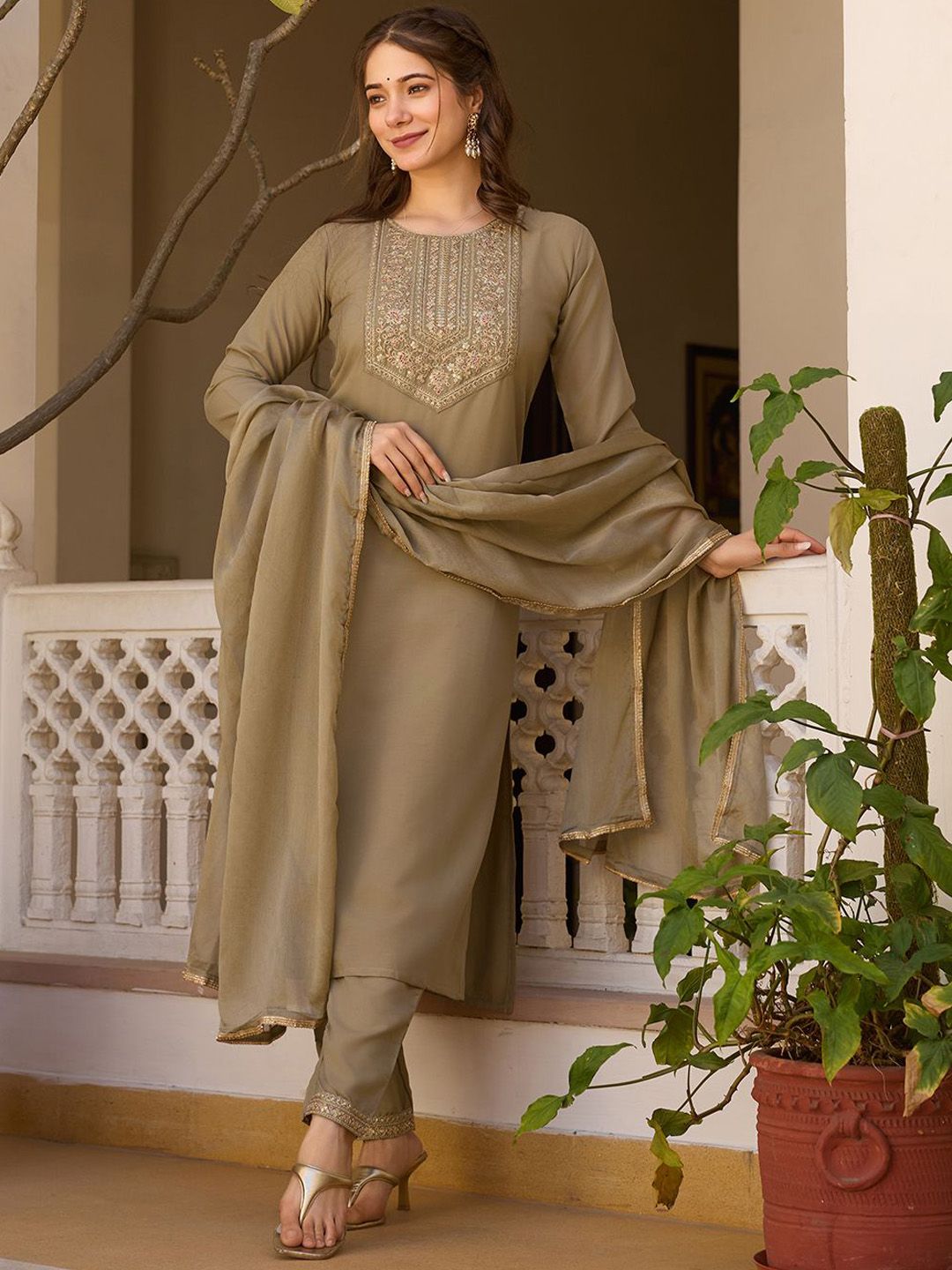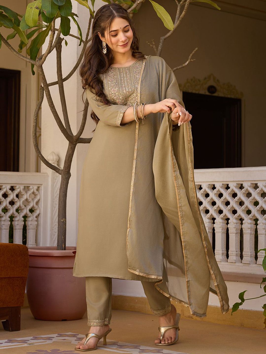 URMIR FASHION Women Embroidered Regular Sequinned Kurta With Trousers & Dupatta
