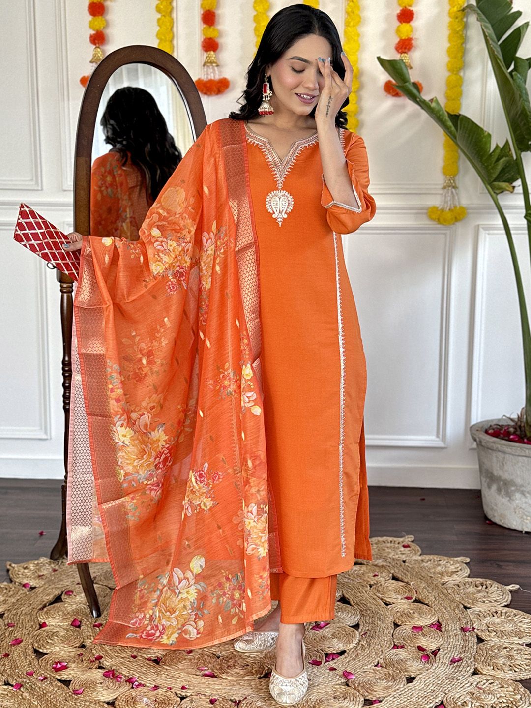 Buy this stylish URMIR FASHION Women Ethnic Motifs Embroidered Thread Work Kurta with Trousers & Dupatta at Marincart Nepal. This product offers great quality and value. Perfect for those looking for the latest trends in fashion. Get yours now at unbeatable prices.