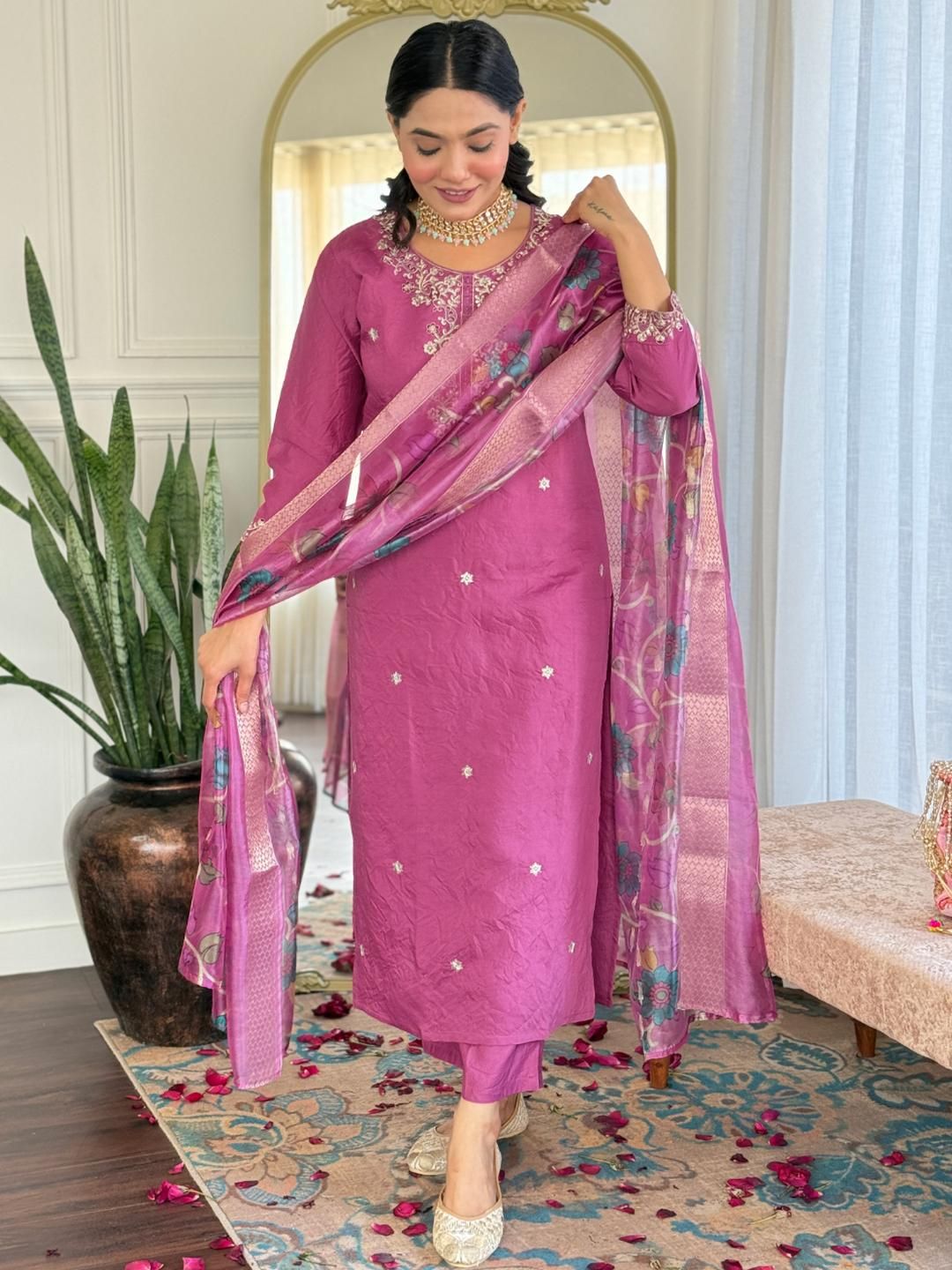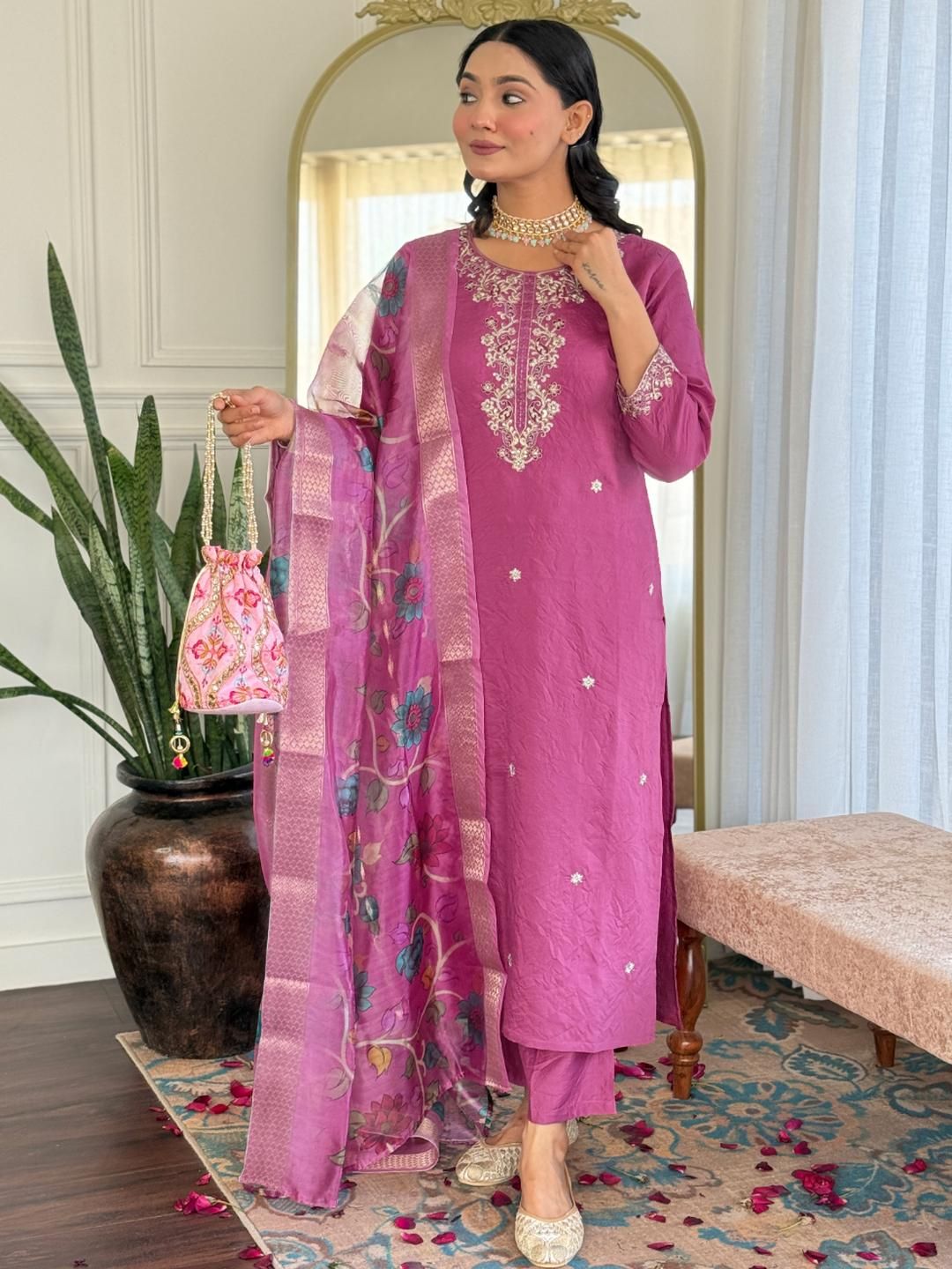 Buy this stylish URMIR FASHION Women Floral Embroidered Regular Thread Work Kurta with Trousers & Dupatta at Marincart Nepal. This product offers great quality and value. Perfect for those looking for the latest trends in fashion. Get yours now at unbeatable prices.
