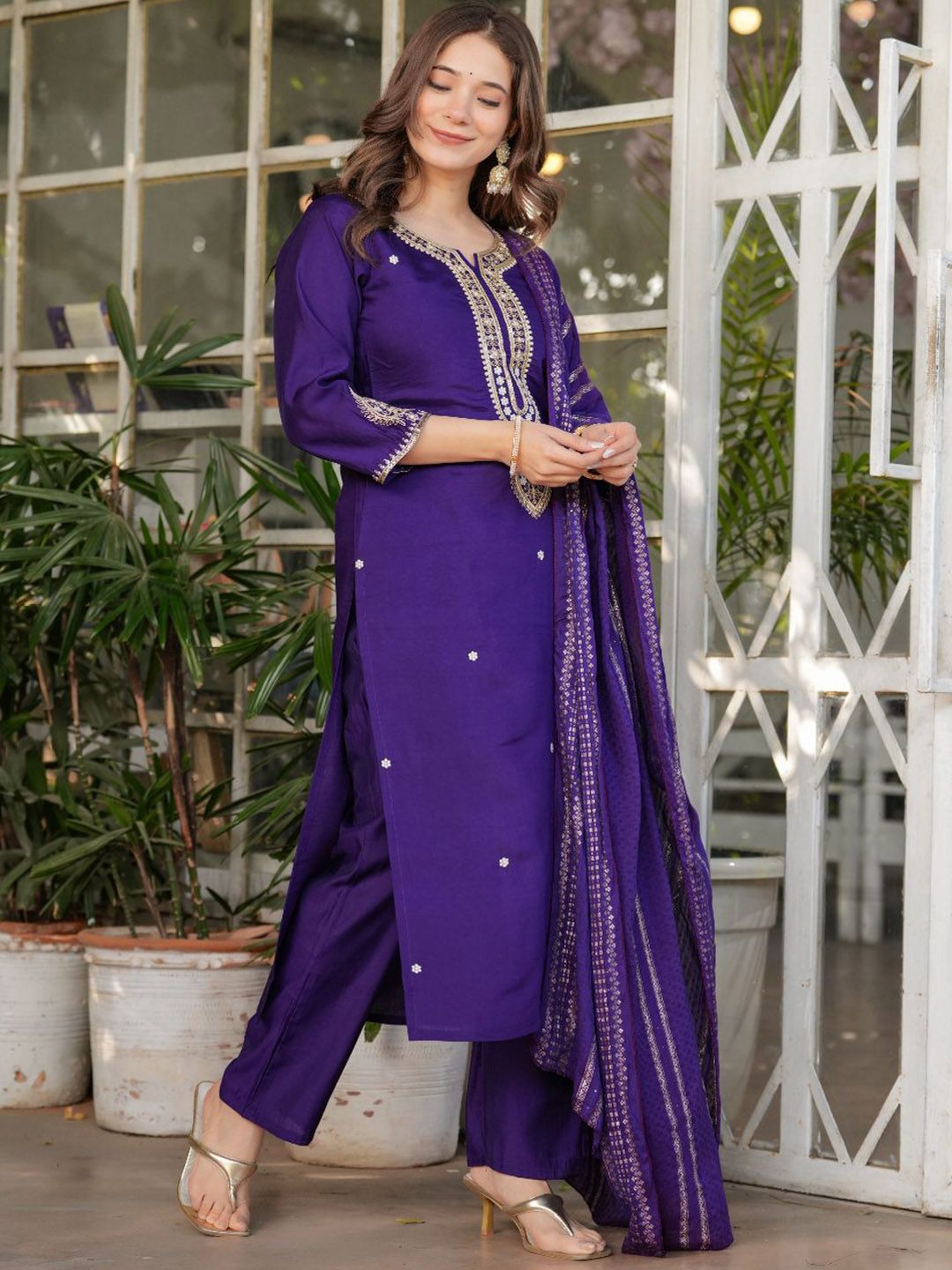 URMIR FASHION Women Floral Embroidered Straight Kurta with Trousers & Dupatta