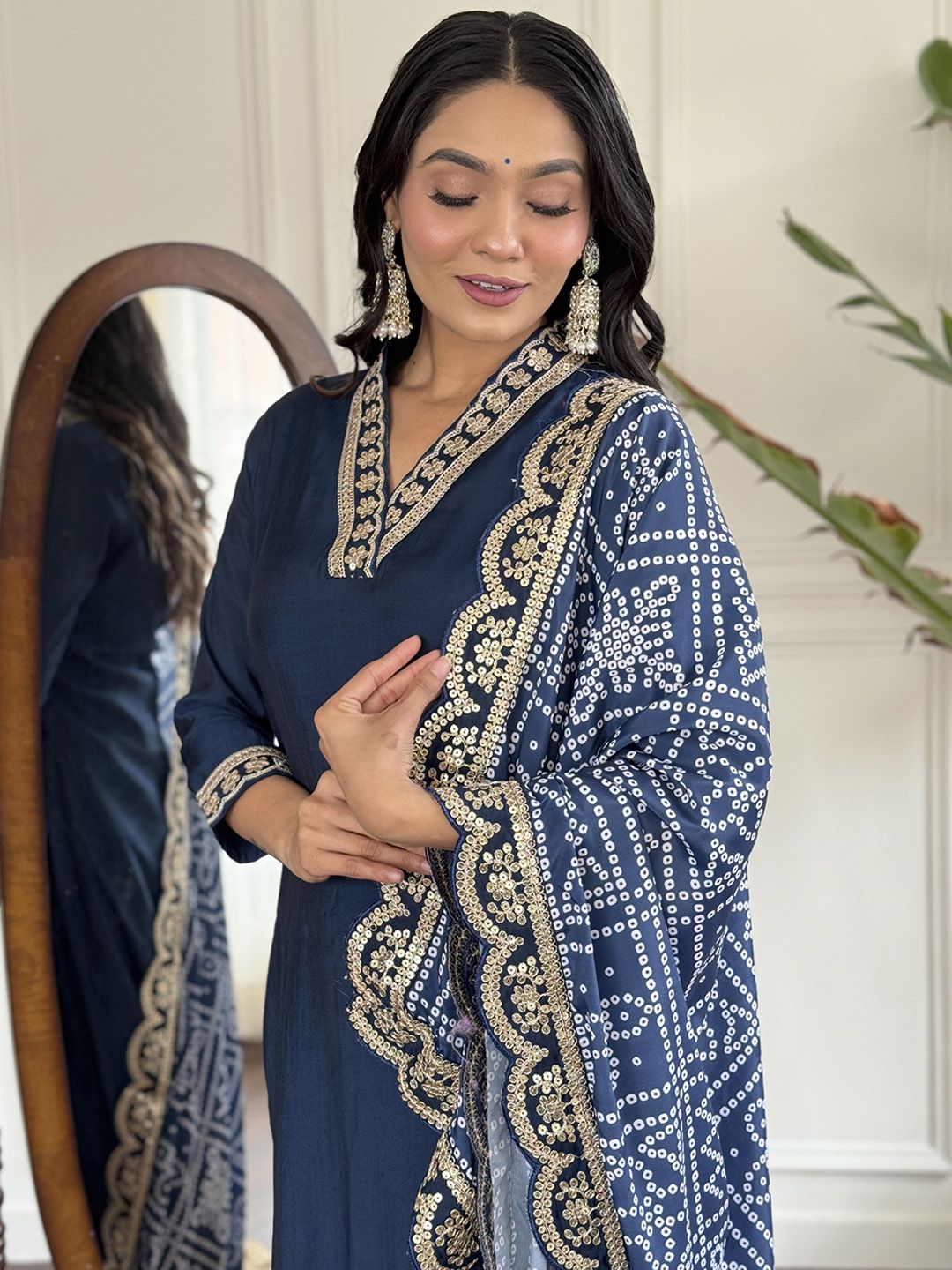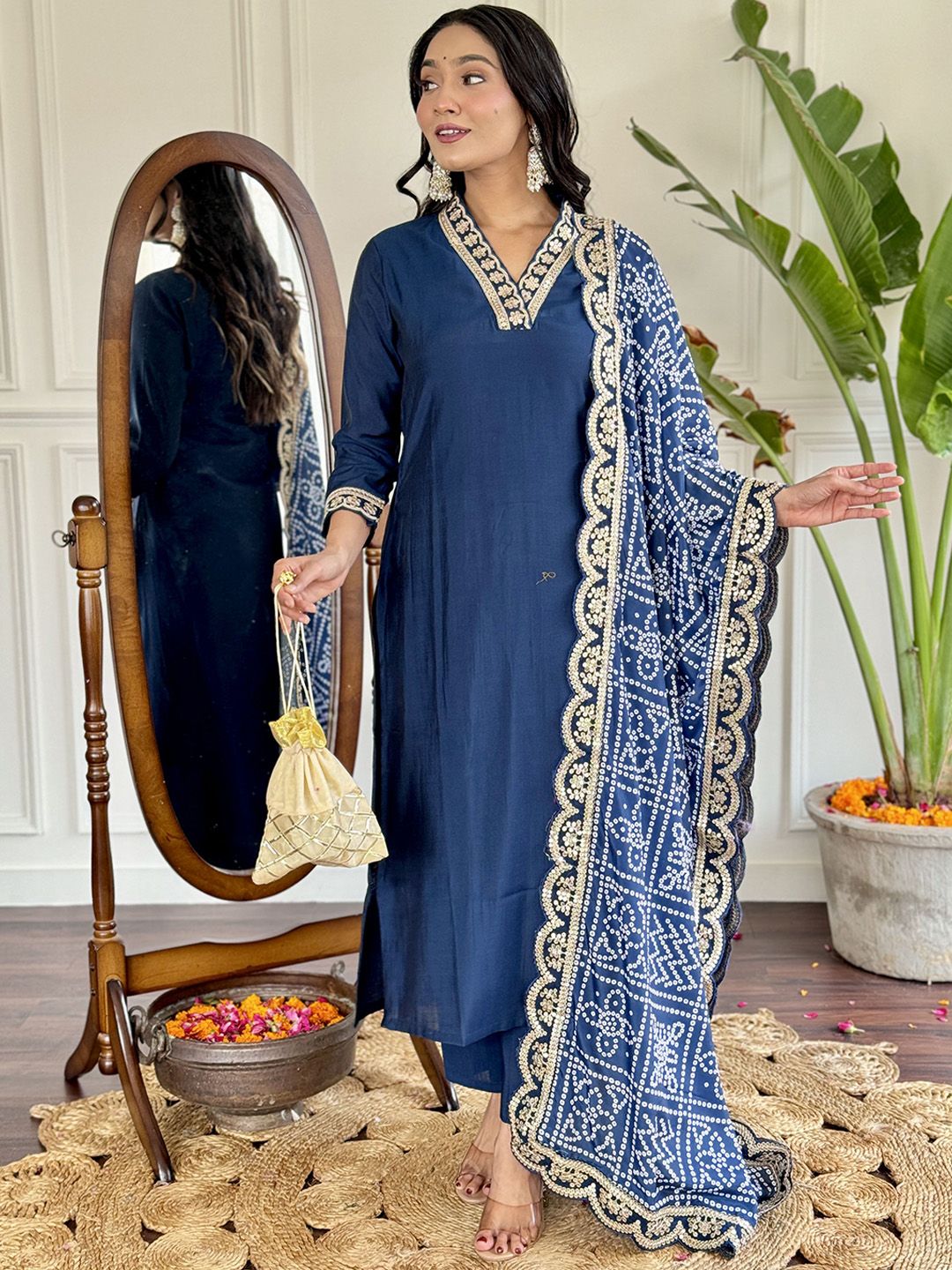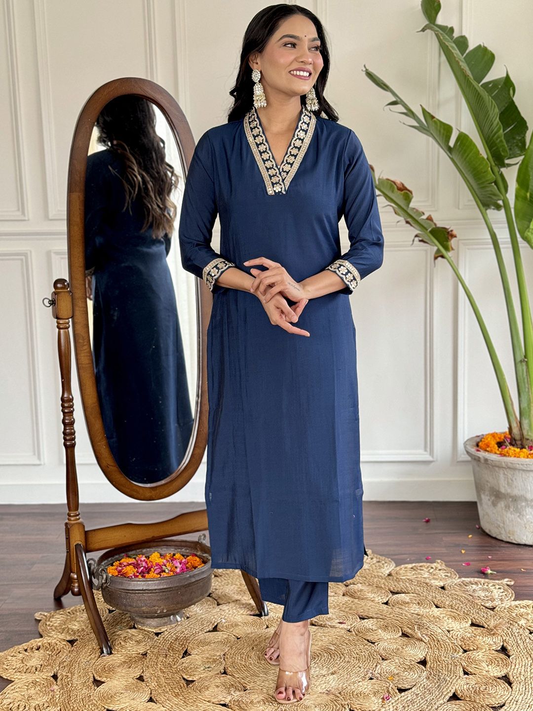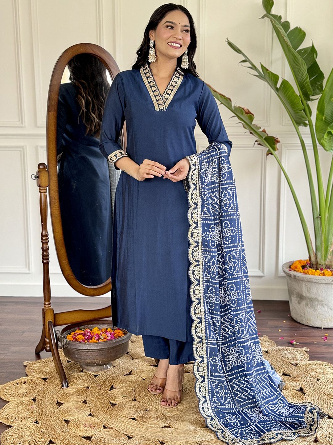 Buy this stylish URMIR FASHION Women Floral Embroidered V-Neck Straight Kurta with Trousers & Dupatta at Marincart Nepal. This product offers great quality and value. Perfect for those looking for the latest trends in fashion. Get yours now at unbeatable prices.