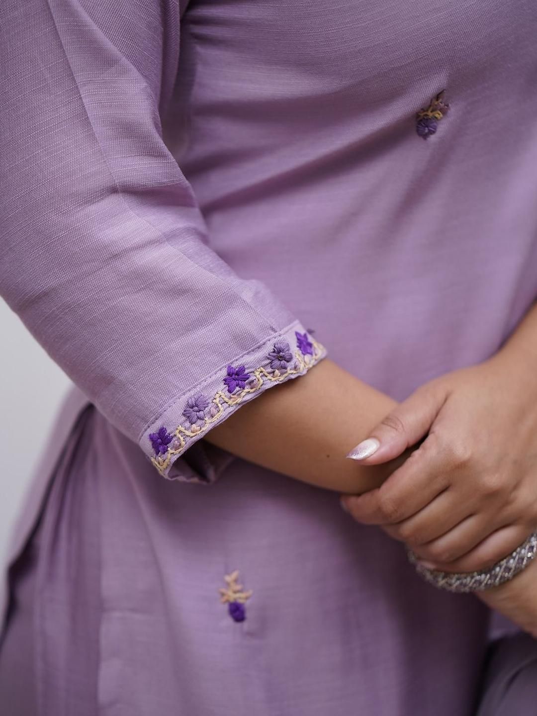 URMIR FASHION Women Lavender Embroidered Regular Kurta with Trousers & With Dupatta