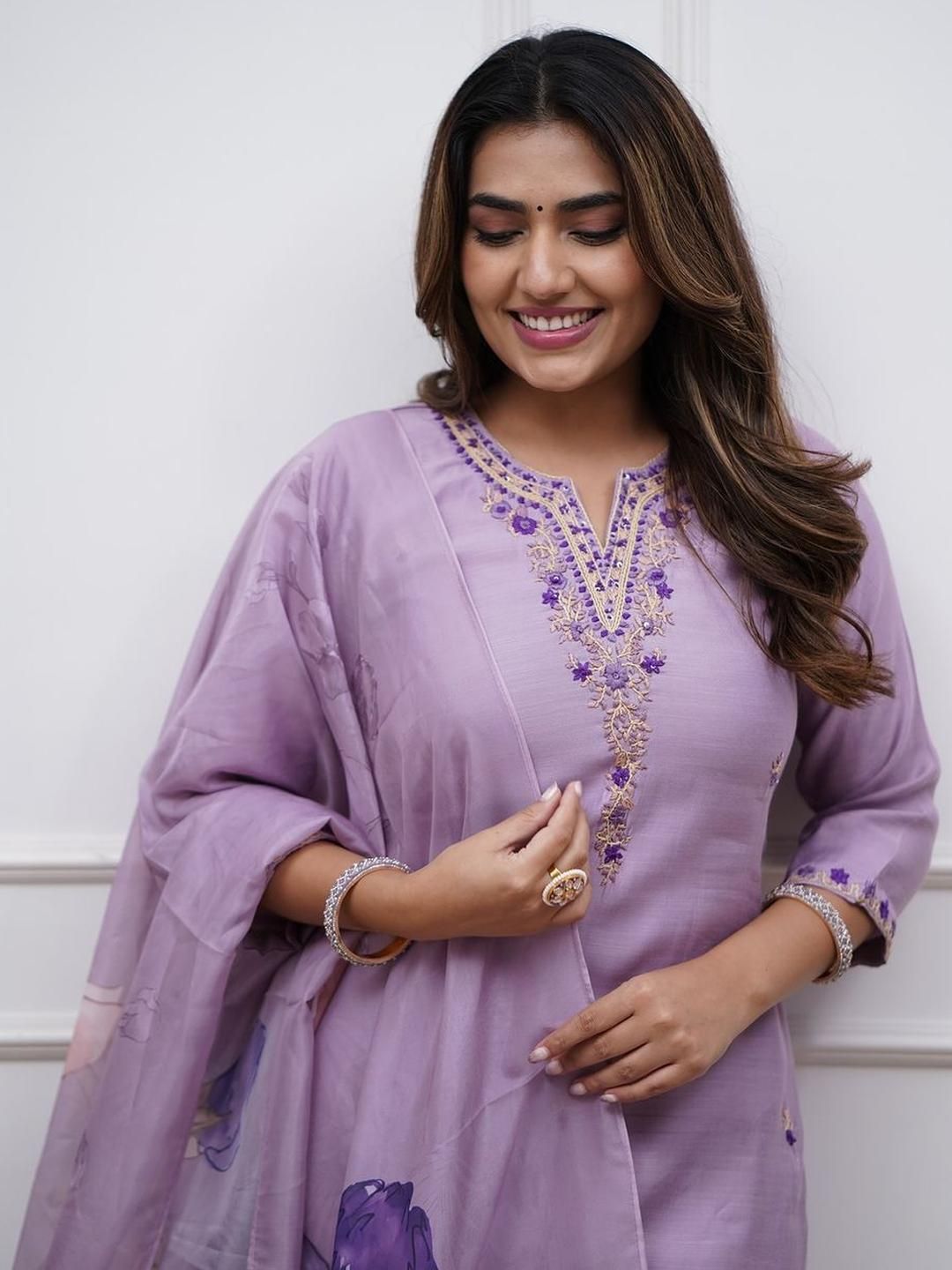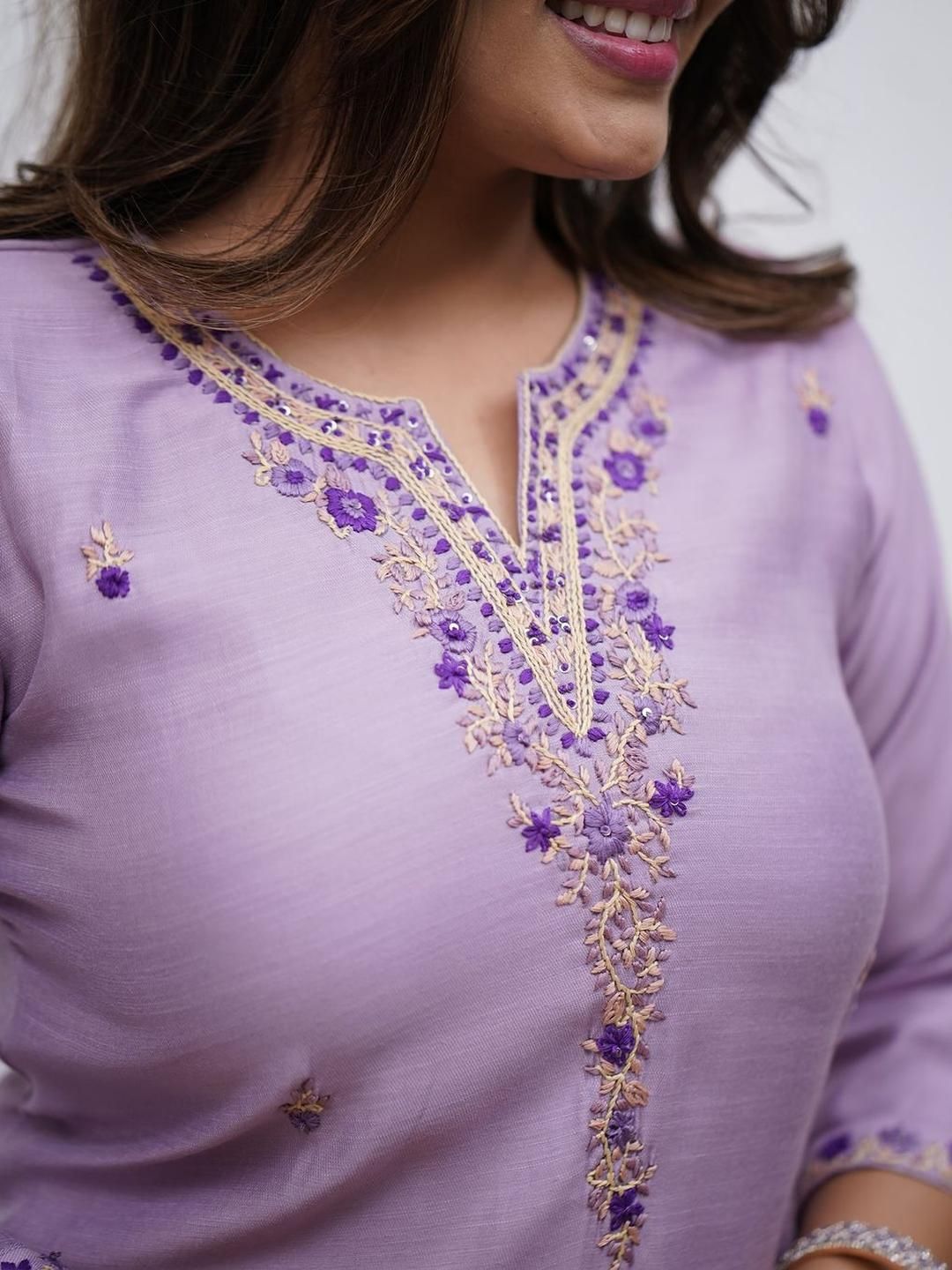 Buy this stylish URMIR FASHION Women Lavender Embroidered Regular Kurta with Trousers & With Dupatta at Marincart Nepal. This product offers great quality and value. Perfect for those looking for the latest trends in fashion. Get yours now at unbeatable prices.