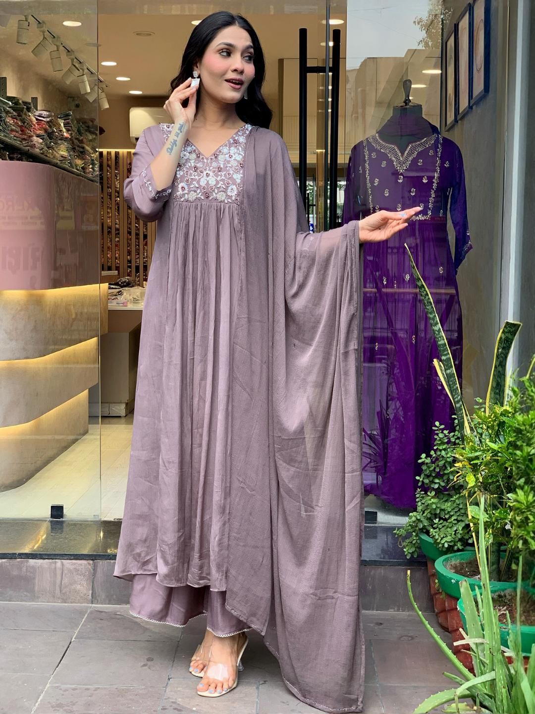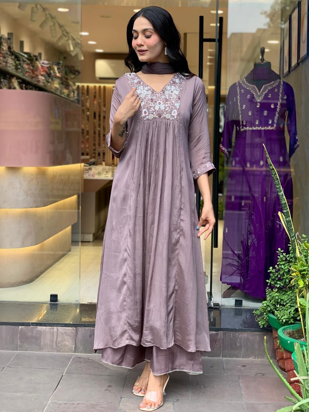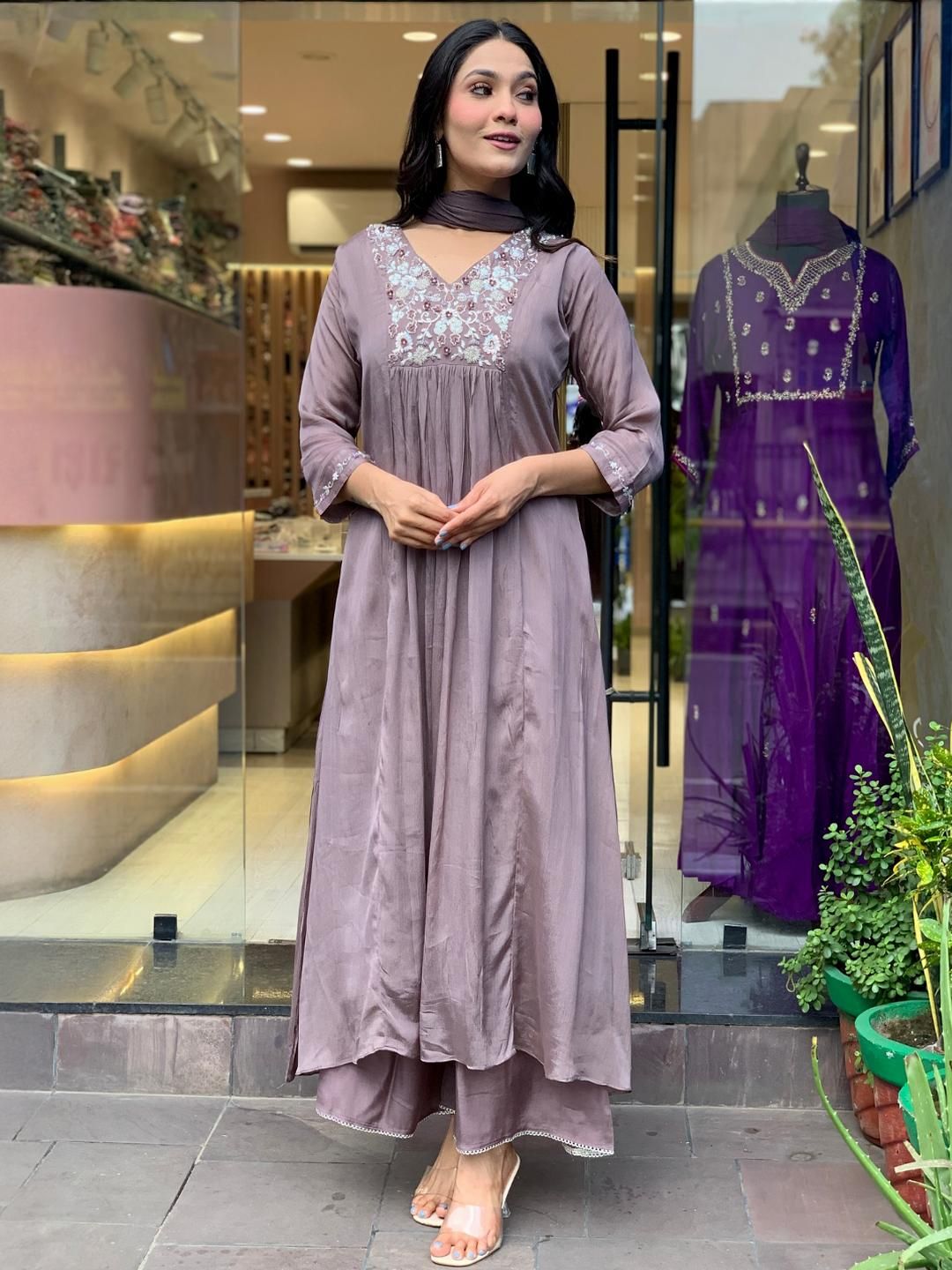 URMIR FASHION Women Pleated Kurta with Trousers & With Dupatta