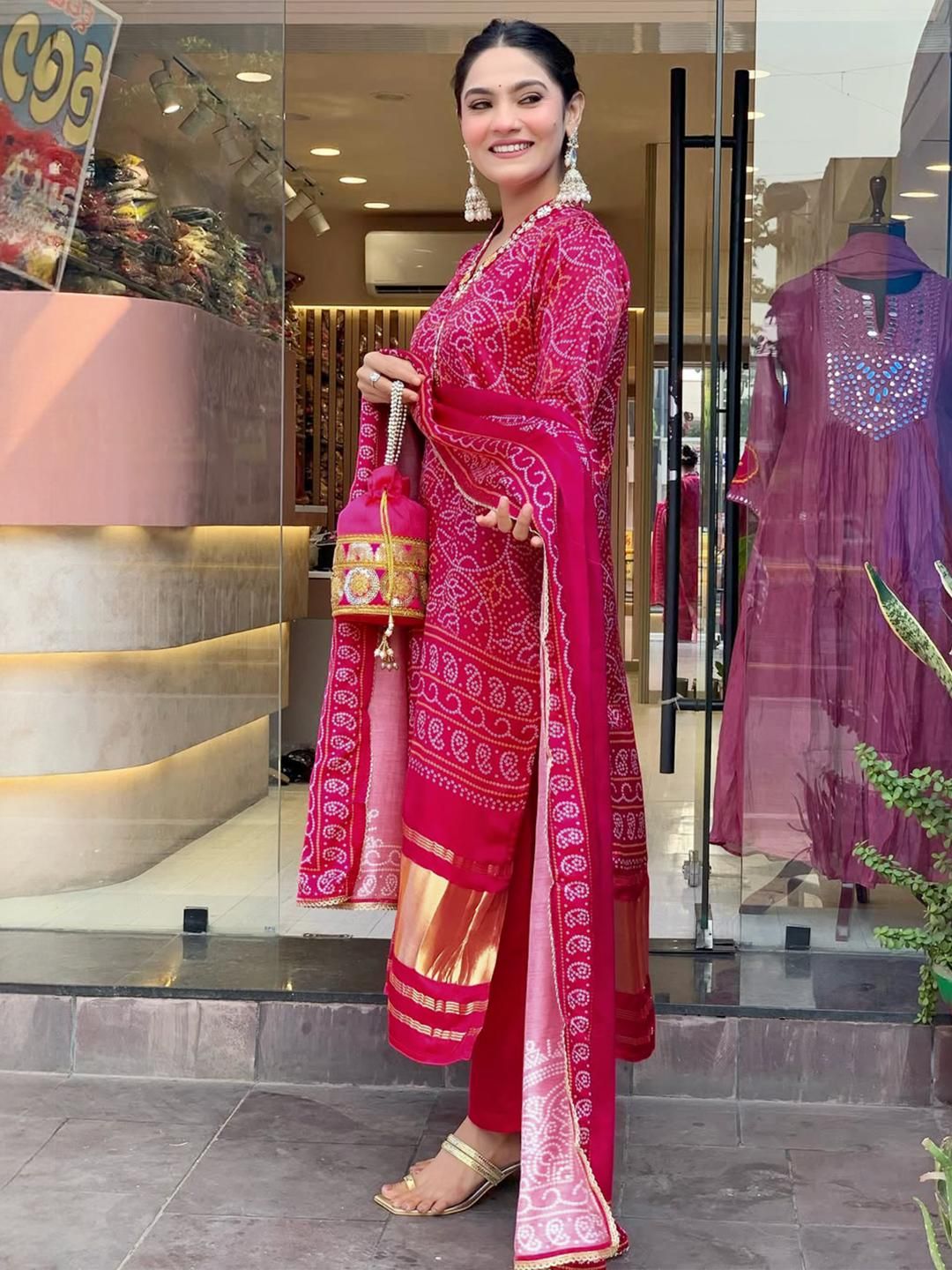 URMIR FASHION Women Red Ethnic Motifs Printed Pleated Kurta with Trousers & Dupatta