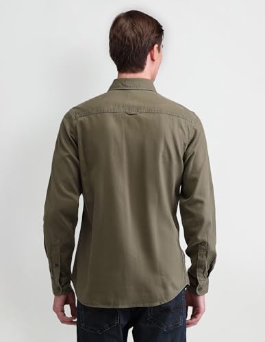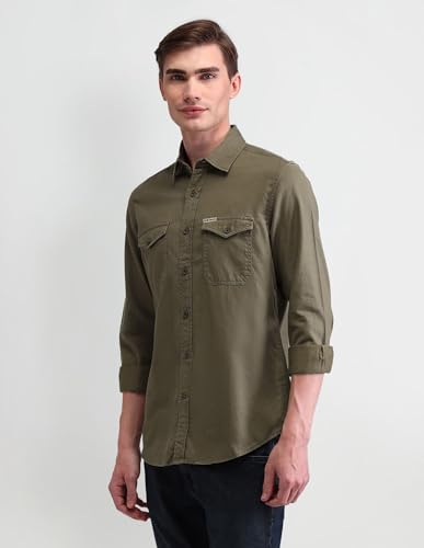 U.S. Polo Assn. Denim Co. Men's Green Solid Spread Collar Long Sleeve Casual Rayon Blend Regular Shirts (UDSHT1400_Green_48)