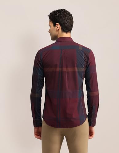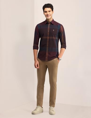 U.S. POLO ASSN. Men's Maroon Checkered Spread Collar Full Sleeve Casual Cotton Tailored Fit Shirt