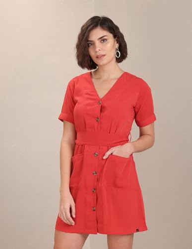 U.S. POLO ASSN. Women's Polyester Button Down Belted Dress Above The Knee Casual