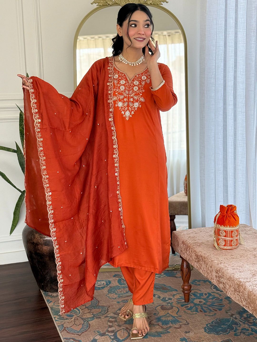 Buy this stylish VAAZI CREATOR Women Ethnic Motifs Embroidered Kurta with Salwar & Dupatta at Marincart Nepal. This product offers great quality and value. Perfect for those looking for the latest trends in fashion. Get yours now at unbeatable prices.