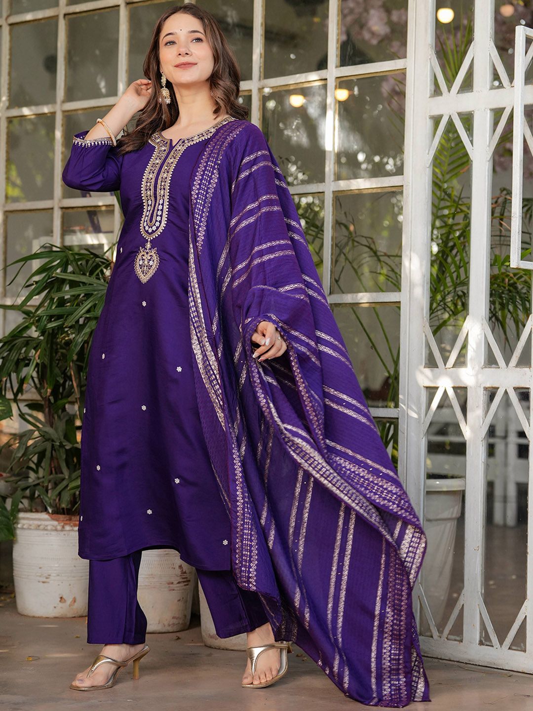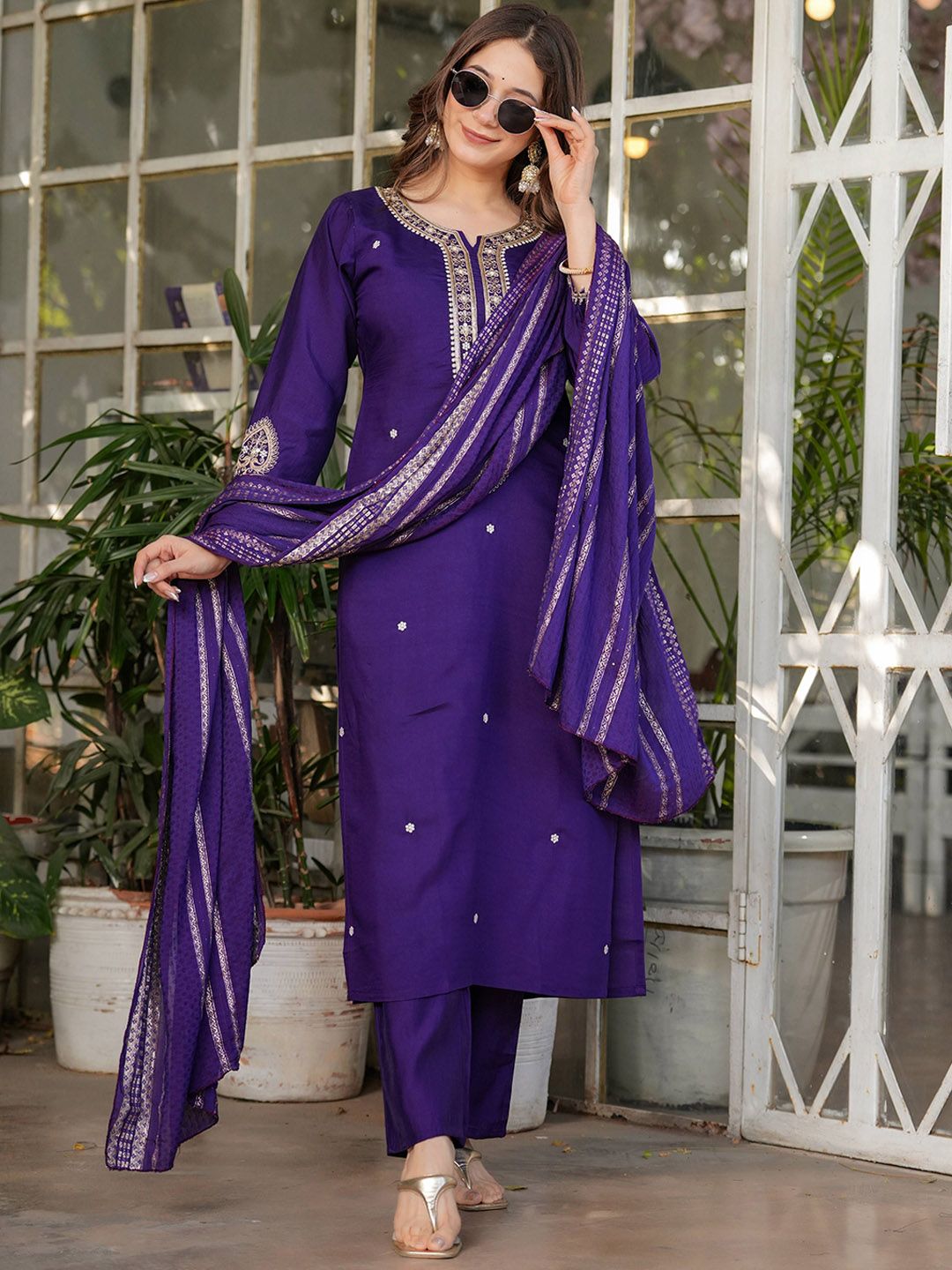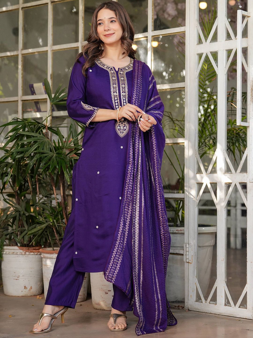 VAAZI CREATOR Women Ethnic Motifs Embroidered Kurta with Trousers & Dupatta