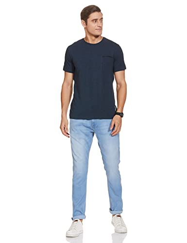 Van Heusen Men's Textured Regular Fit T-Shirt (IHIKTS1LBU60031_Blue XL)