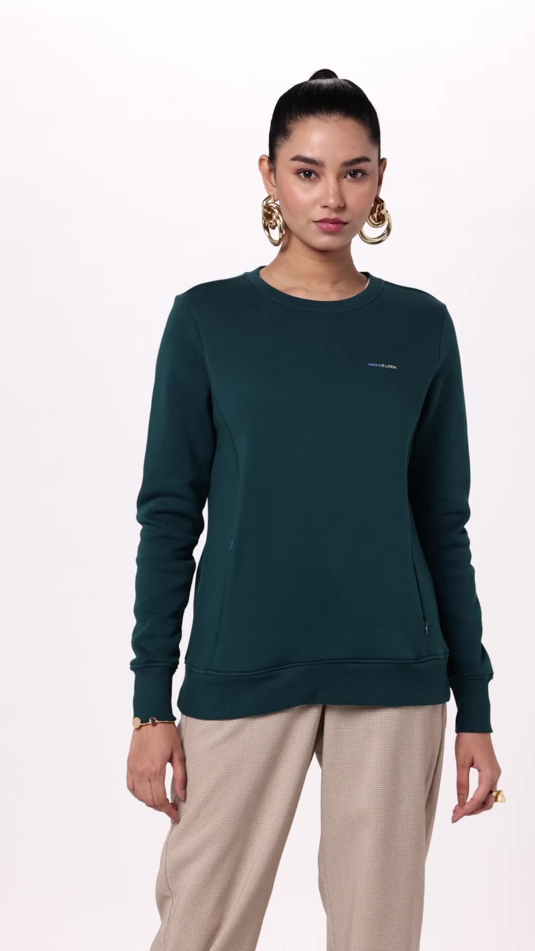Van Heusen Women Cotton Athleisure Crew Neck Sweatshirt - Long Sleeve, Zipper Pocket