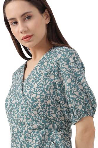 Van Heusen Women's Polyester A-Line Calf Length Dress (VWDRURGP453270_Blue_S)