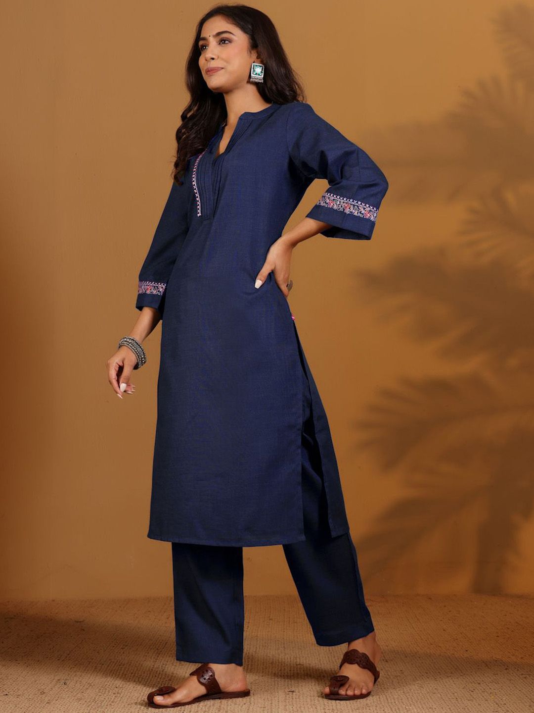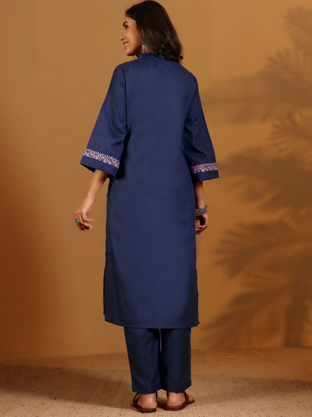 Varanga Embroidered Straight Thread Work Kurta With Trousers