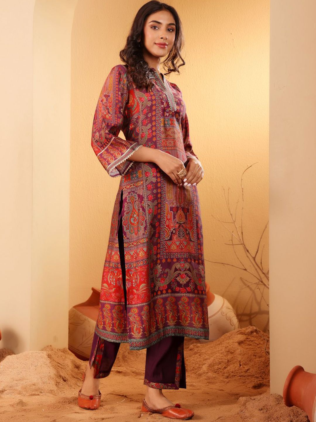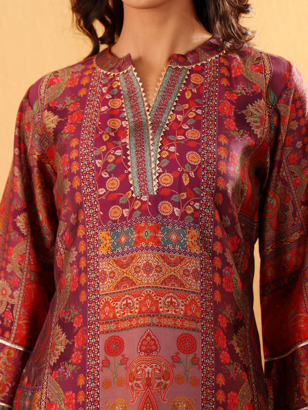 Buy this stylish Varanga Ethnic Motifs Printed Mandarin Collar Gotta Patti Chanderi Silk Kurta & Trousers at Marincart Nepal. This product offers great quality and value. Perfect for those looking for the latest trends in fashion. Get yours now at unbeatable prices.