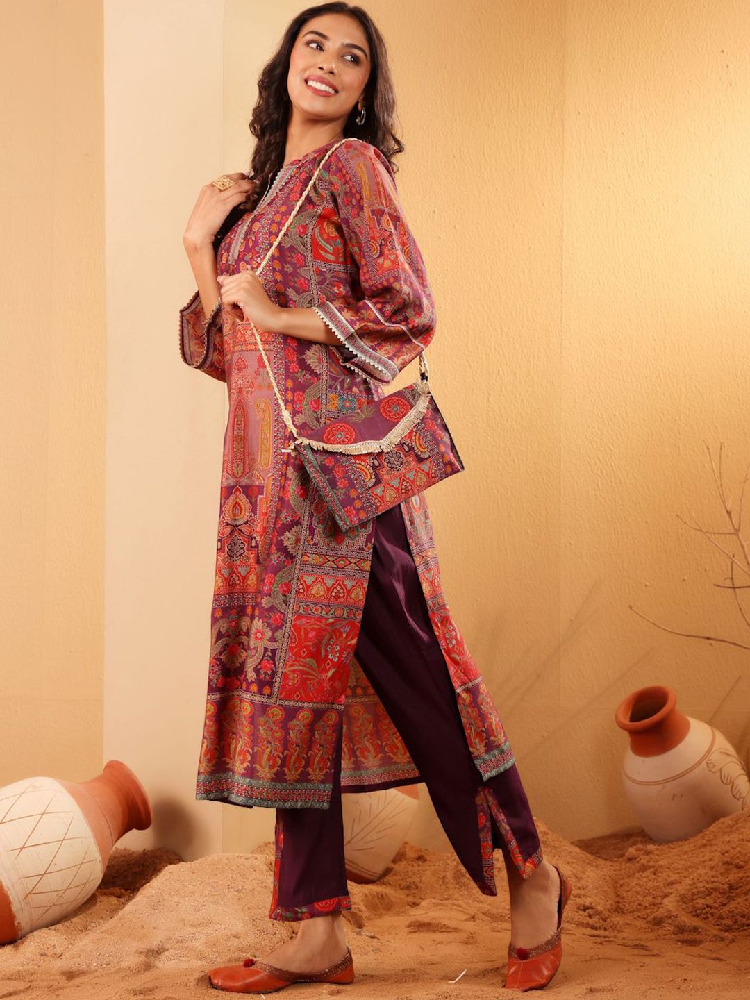 Varanga Ethnic Motifs Printed Mandarin Collar Gotta Patti Chanderi Silk Kurta & Trousers
