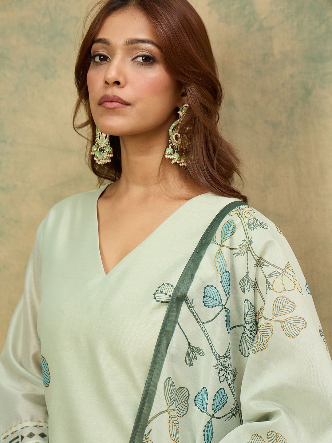 Buy this stylish Varanga Floral Printed V-Neck Chanderi Silk Kurta With Trousers & Dupatta at Marincart Nepal. This product offers great quality and value. Perfect for those looking for the latest trends in fashion. Get yours now at unbeatable prices.