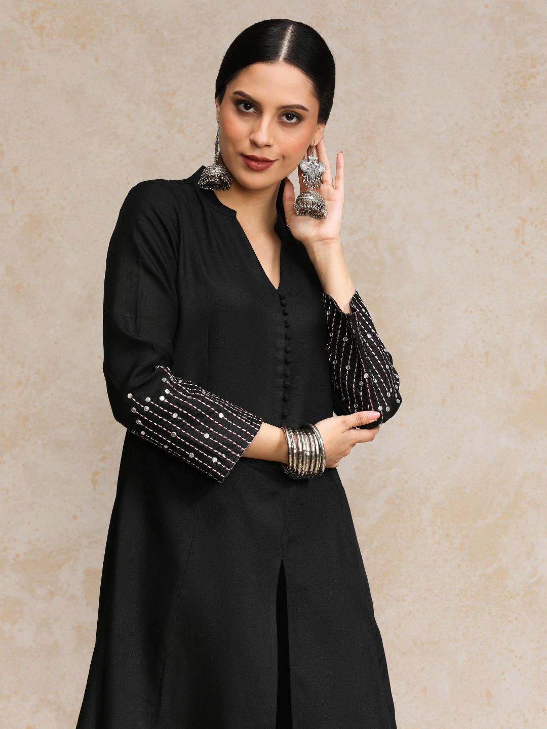 Varanga Mandarin Collar A-Line Kurta With Trousers