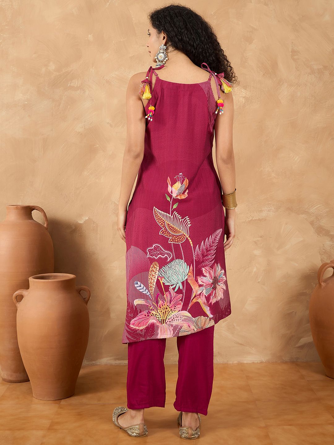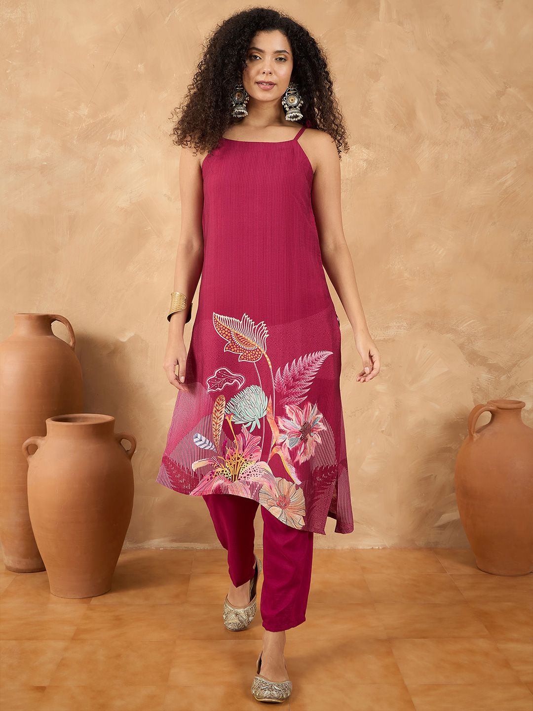 Varanga Spaghetti Tie Up Strap Floral Kurta with Trousers