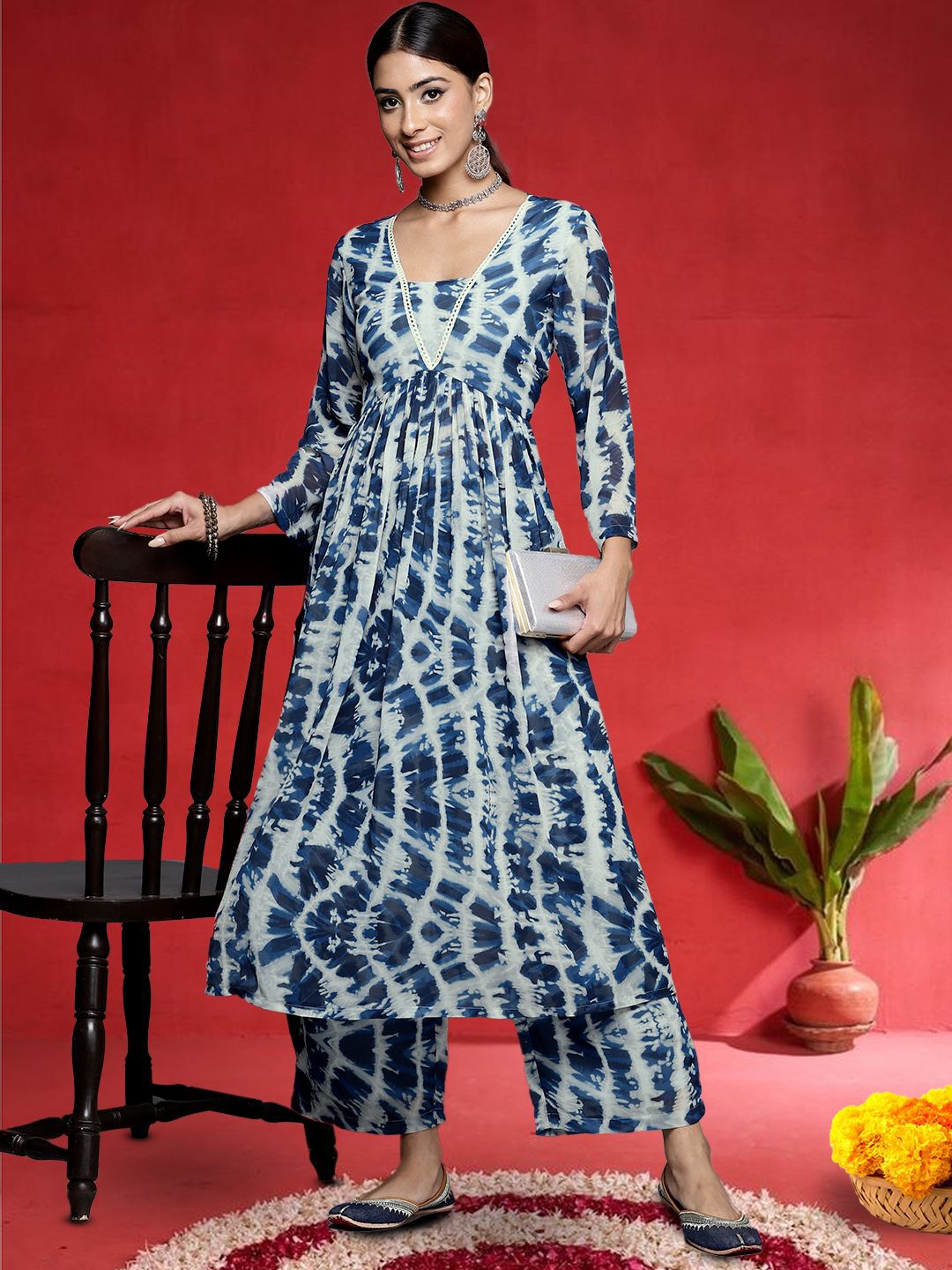 Varanga Women Abstract Dyed Empire A-Line Calf Length Kurta Set