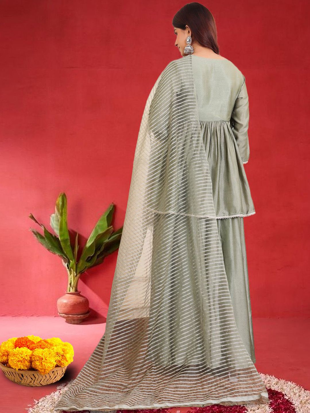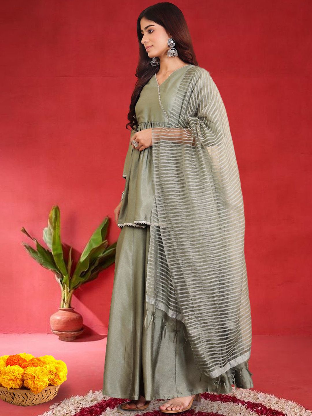 Varanga Women Angrakha Pure Silk Kurta with Sharara & Dupatta