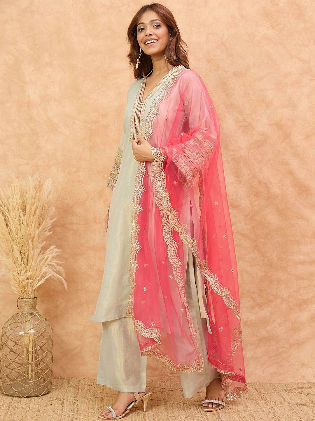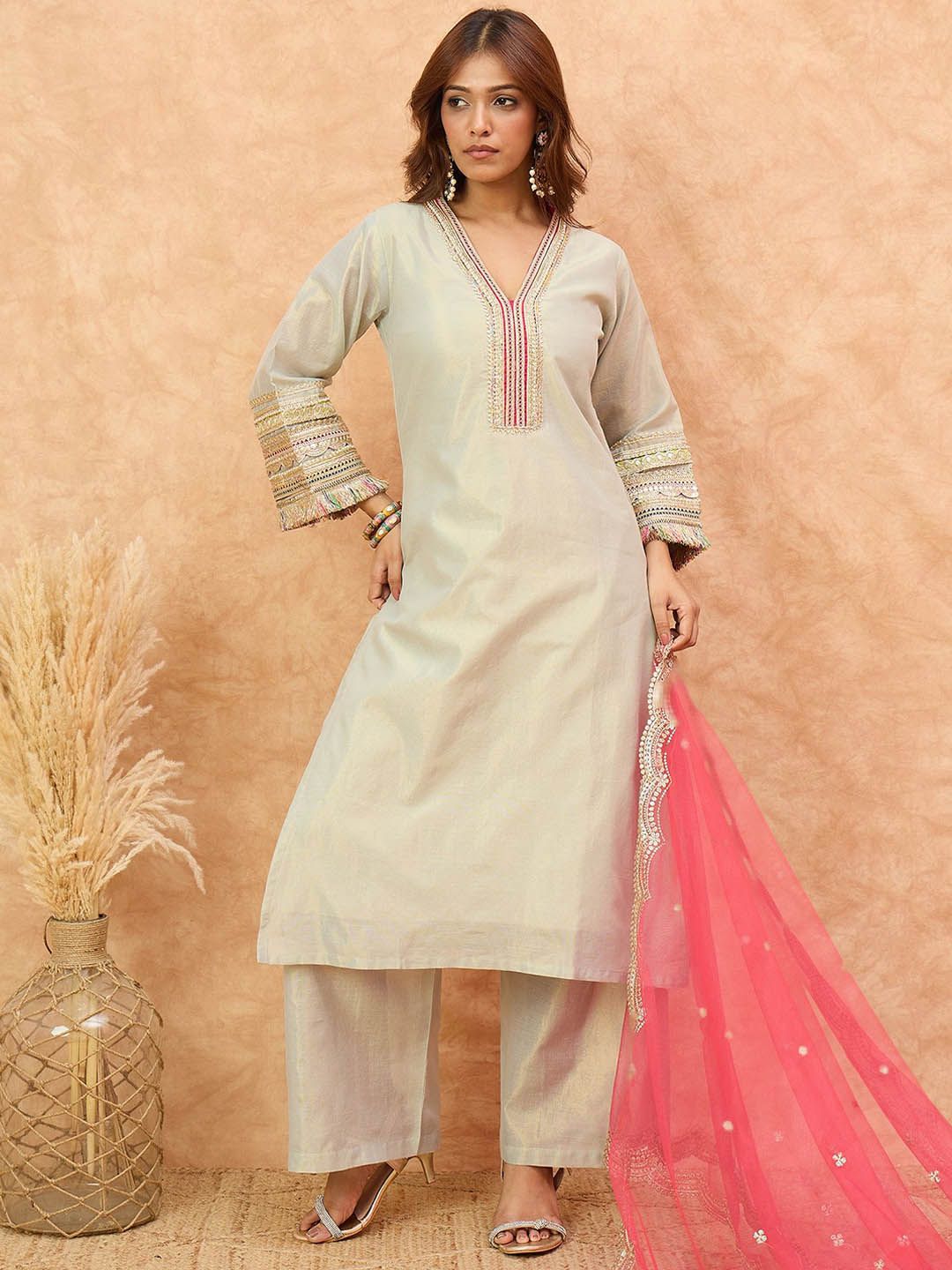 Varanga Women Embroidered Regular Kurta with Trousers & With Dupatta