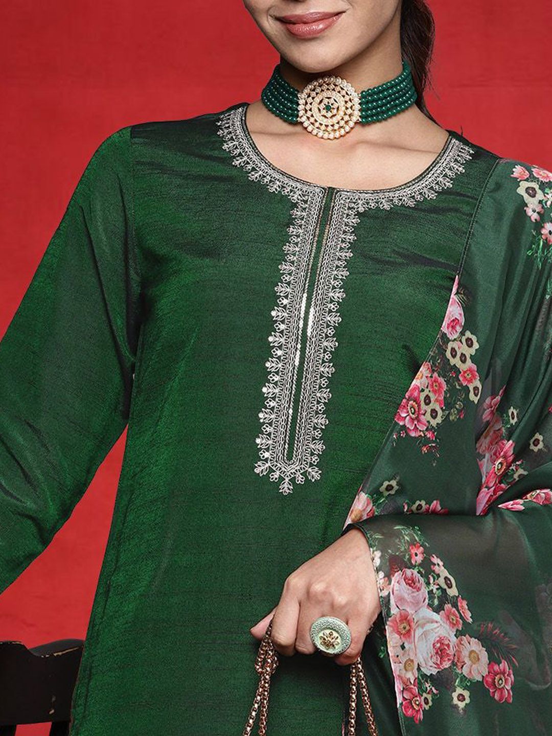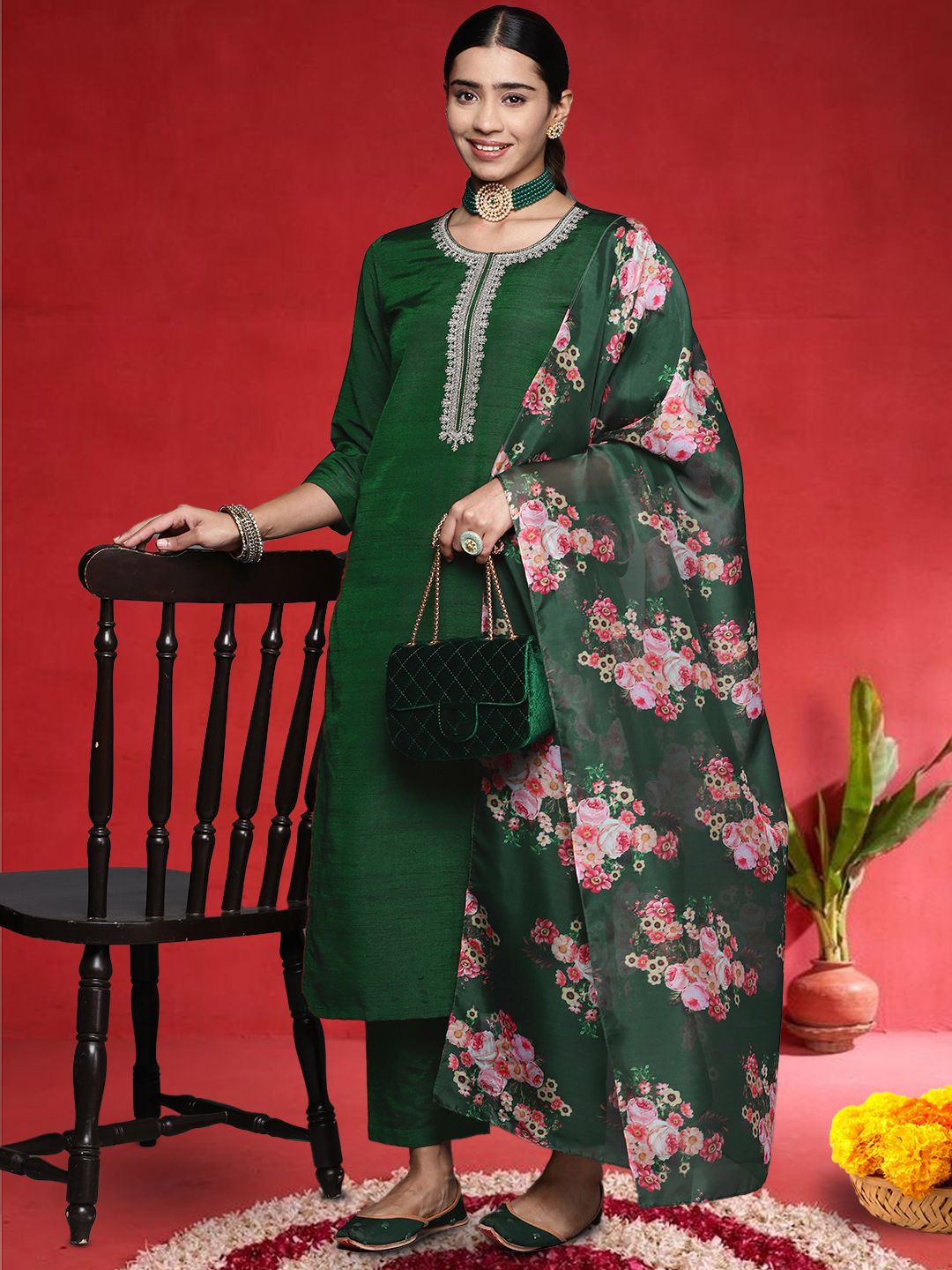 Varanga Women Ethnic Motifs Embroidered Kurta with Trousers & Dupatta