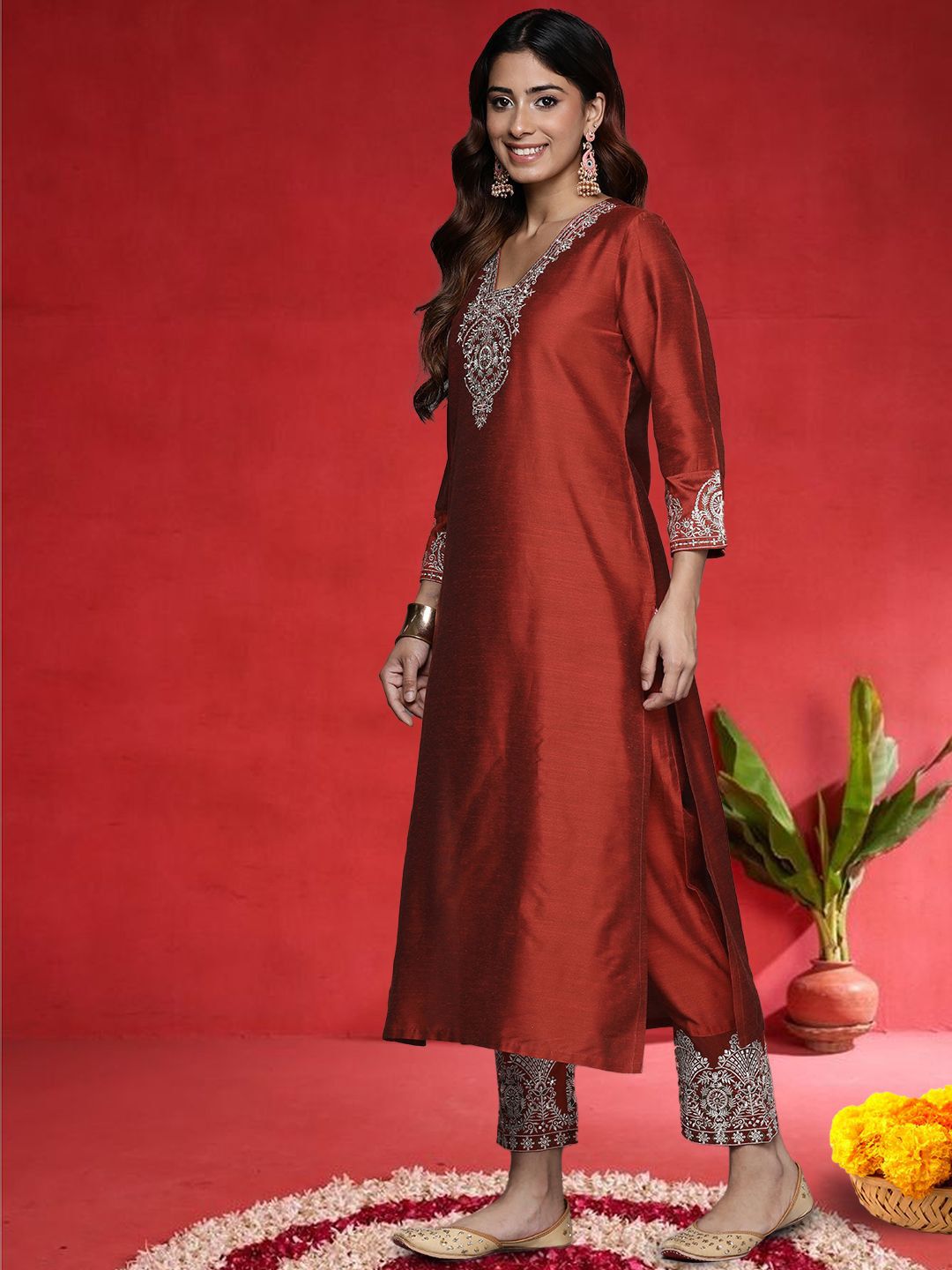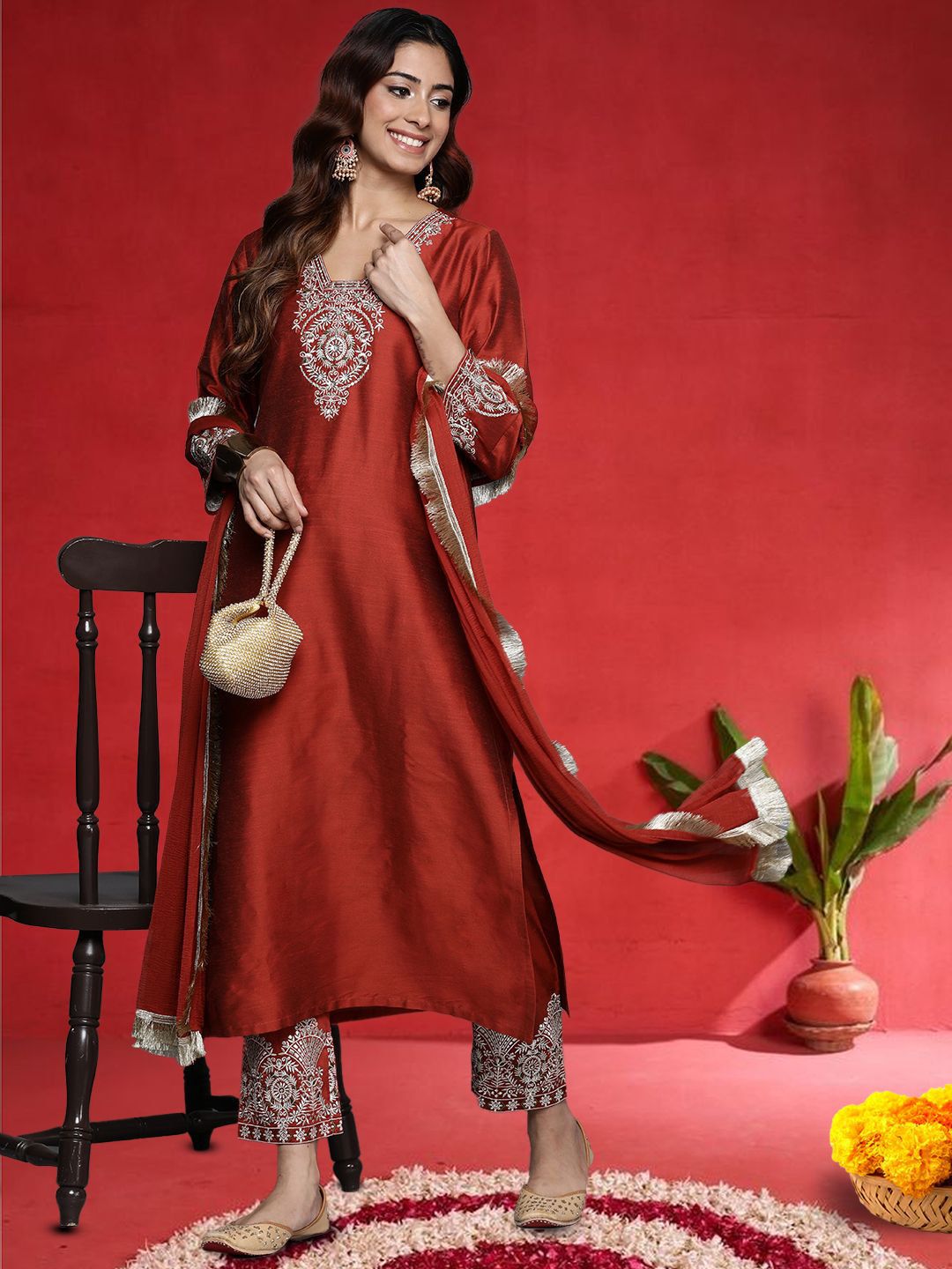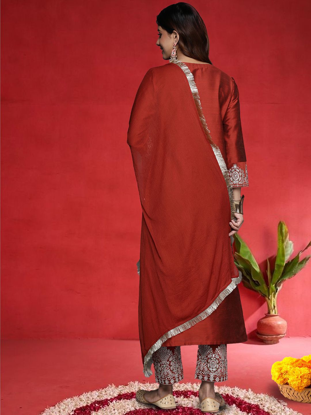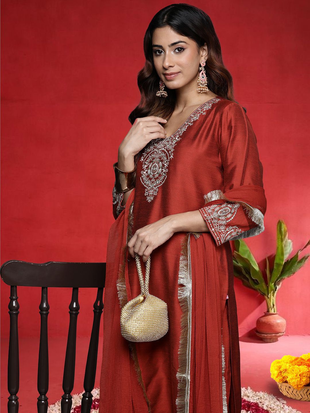 Buy this stylish Varanga Women Ethnic Motifs Embroidered V-Neck Sequinned Kurta with Trousers & Dupatta at Marincart Nepal. This product offers great quality and value. Perfect for those looking for the latest trends in fashion. Get yours now at unbeatable prices.