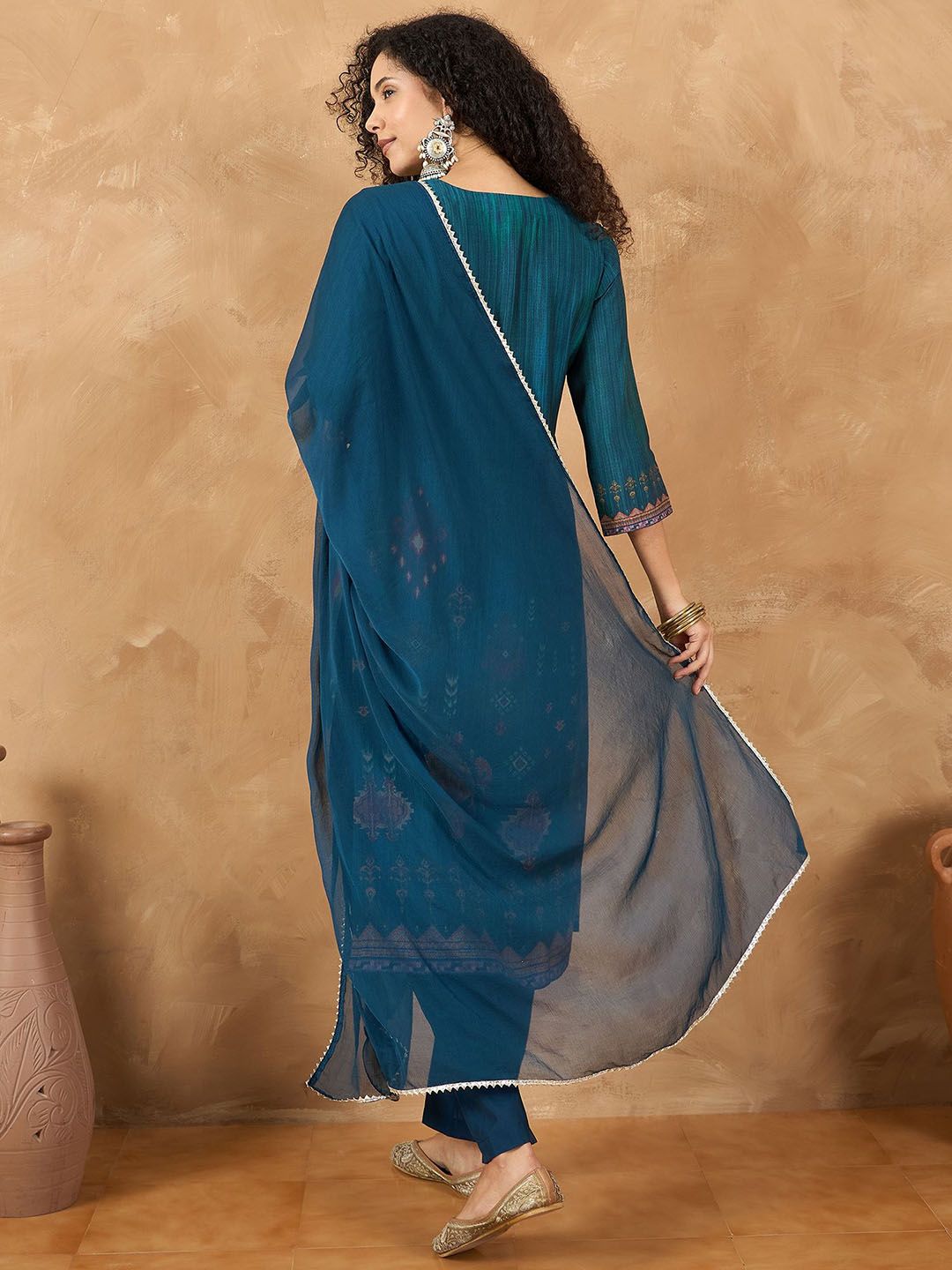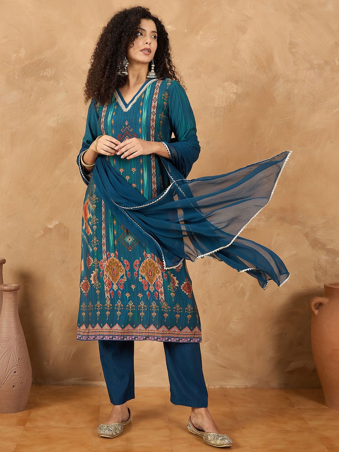 Varanga Women Ethnic Motifs Printed Regular Gotta Patti Kurta with Trousers & Dupatta