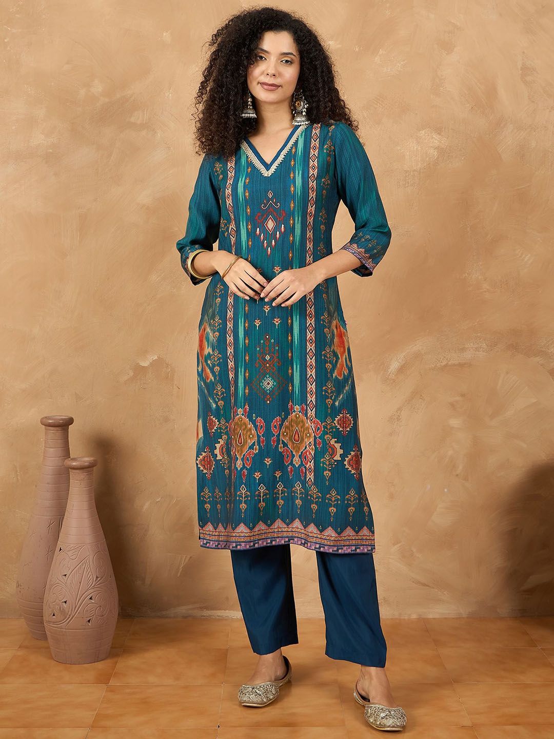 Buy this stylish Varanga Women Ethnic Motifs Printed Regular Gotta Patti Kurta with Trousers & Dupatta at Marincart Nepal. This product offers great quality and value. Perfect for those looking for the latest trends in fashion. Get yours now at unbeatable prices.