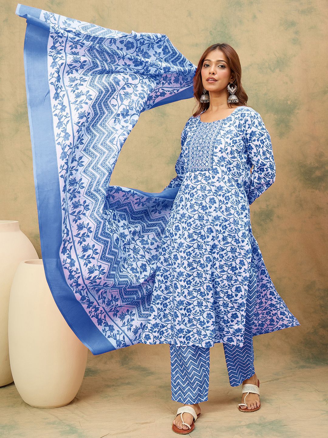 Varanga Women Floral Printed Kurta with Palazzo & Dupatta