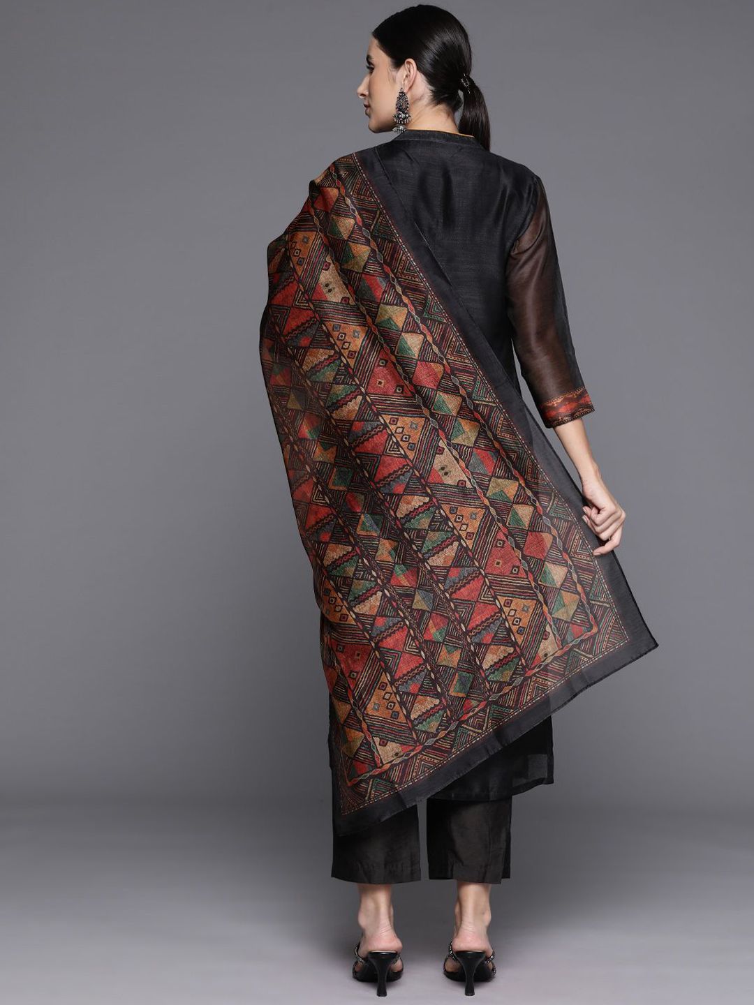 Varanga Women Geometric Printed Mandarin Collar Regular Kurta & Trousers With Dupatta
