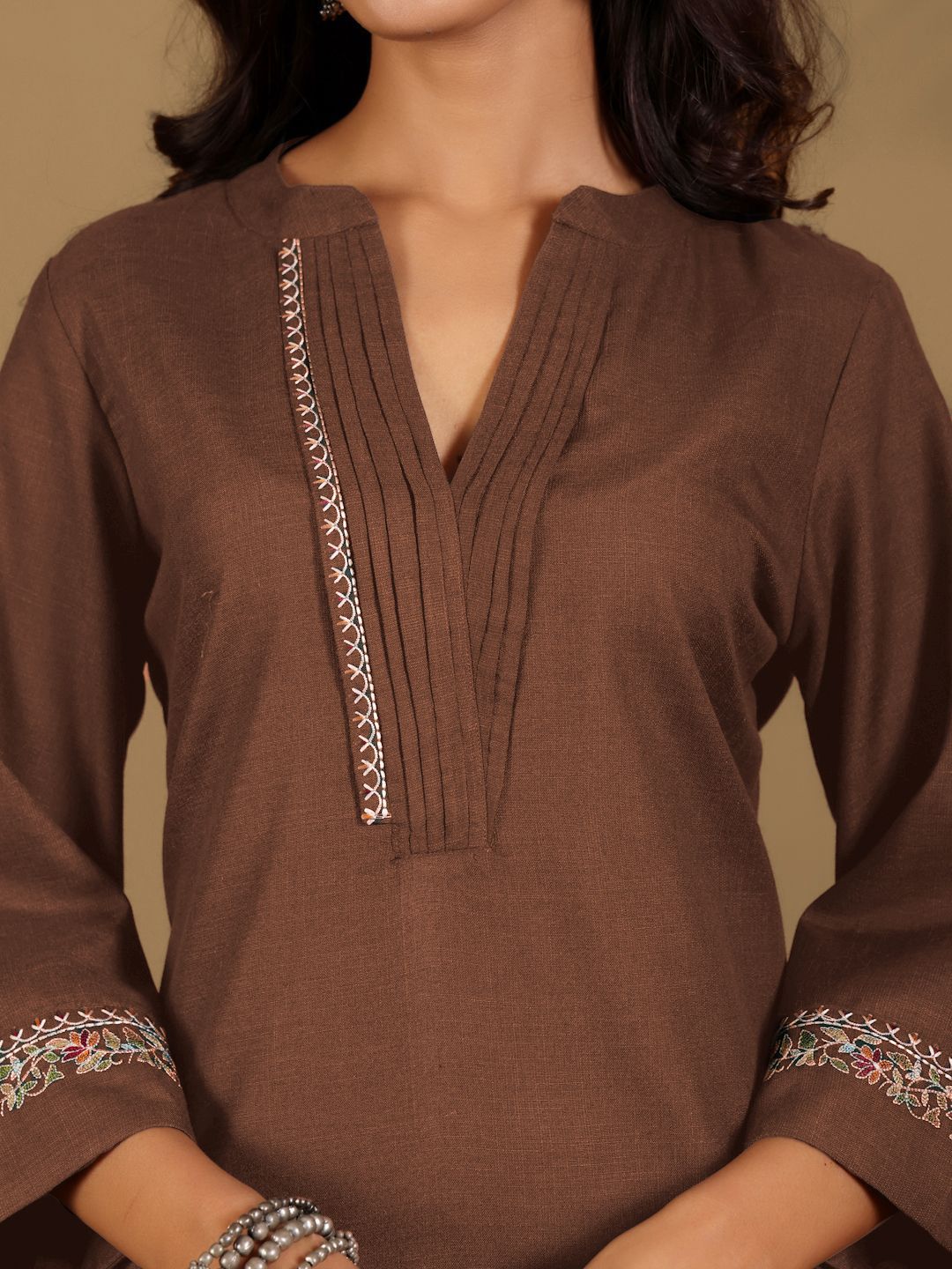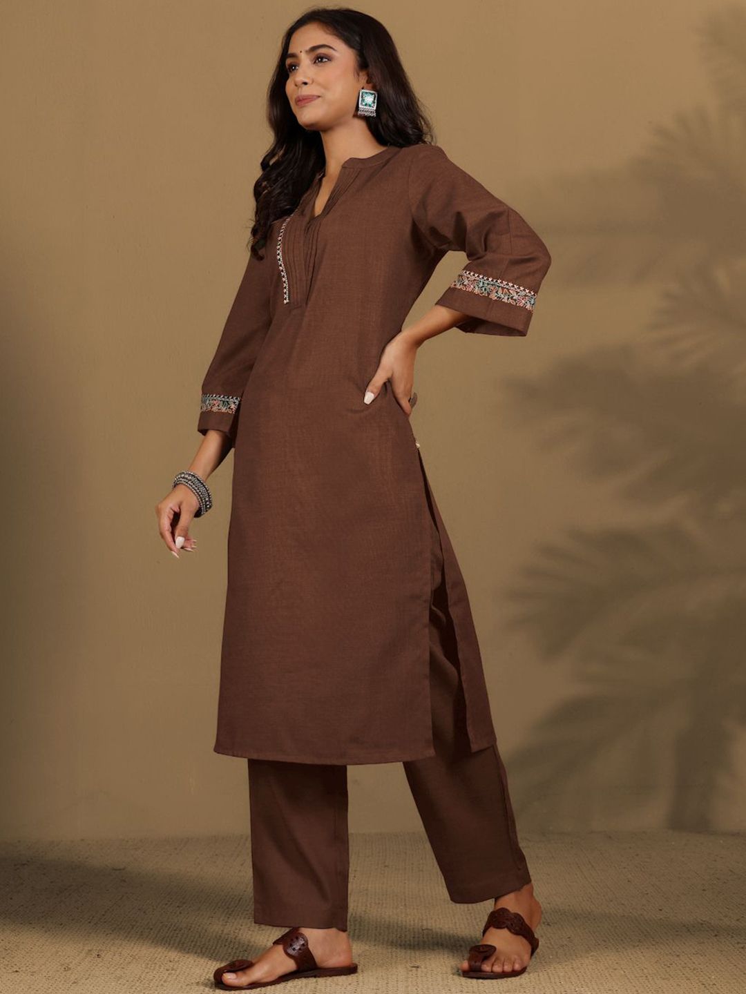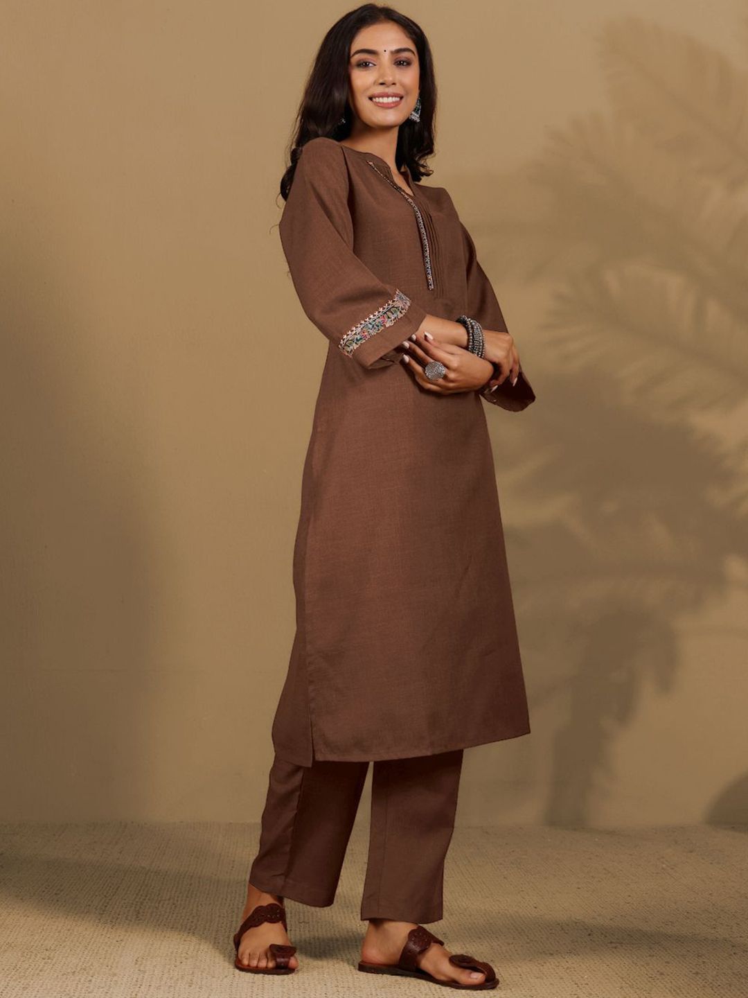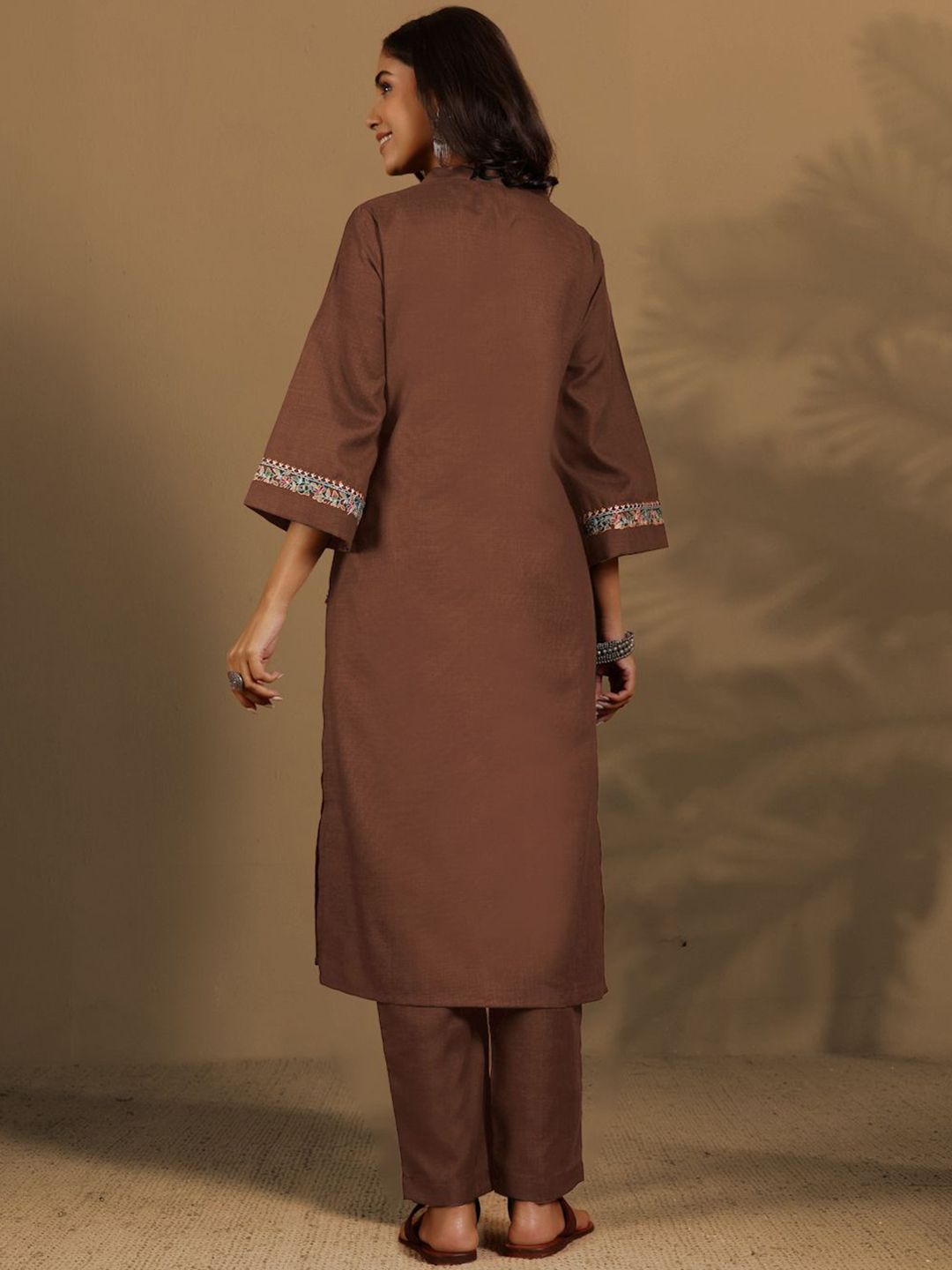Varanga Women Regular Mandarin Collar Thread Work Kurta with Trousers