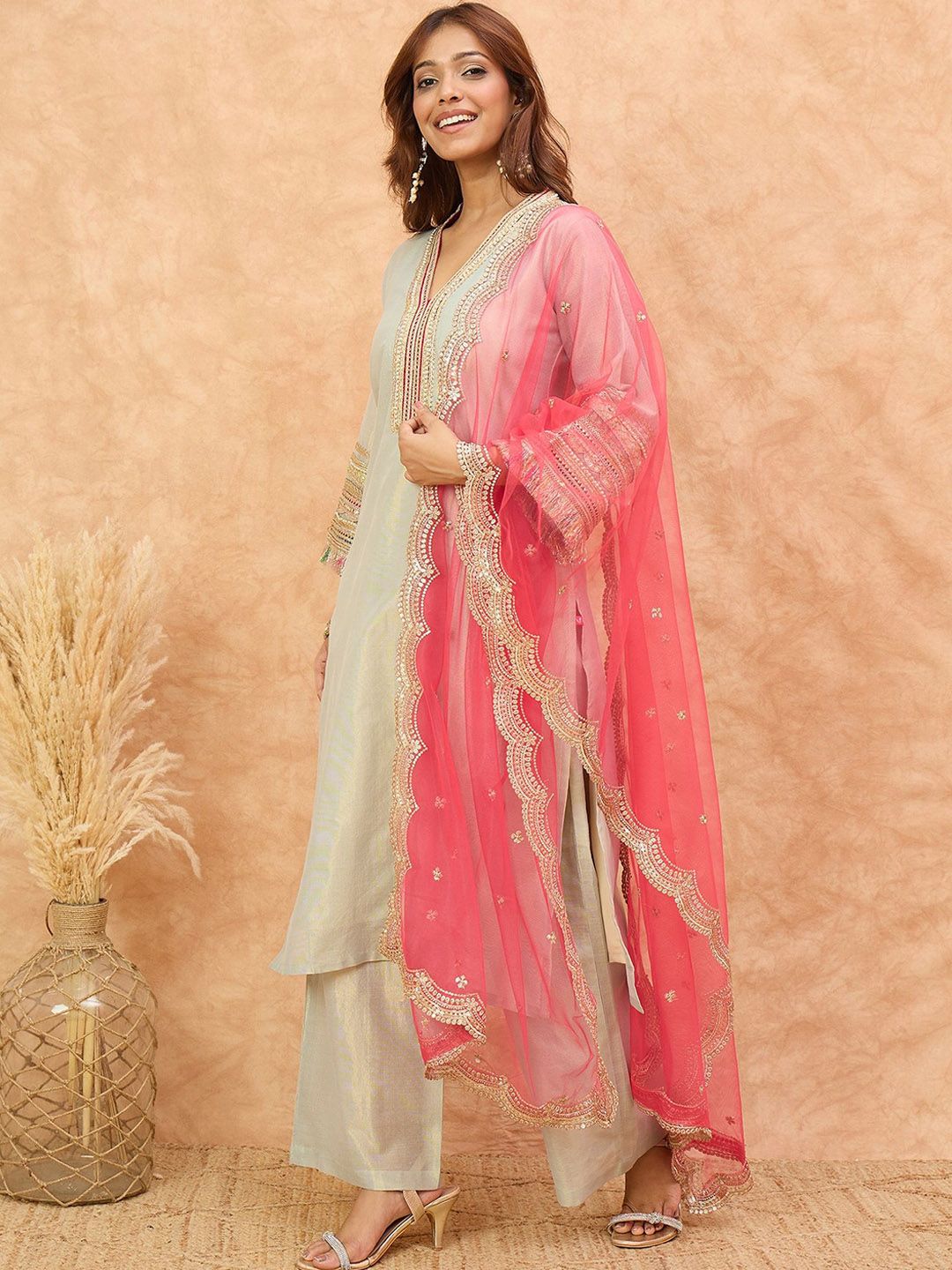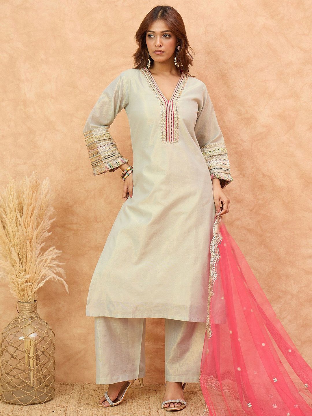Varanga Women Solid Kurta with Trousers & Dupatta