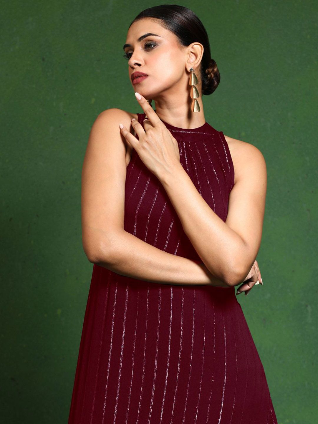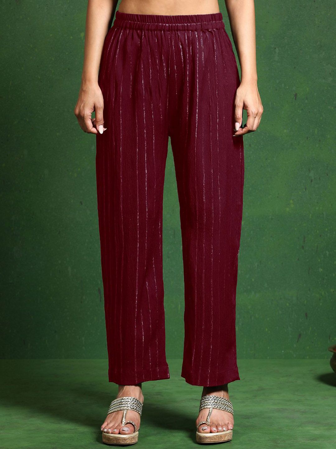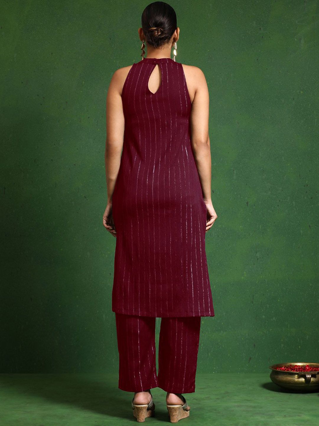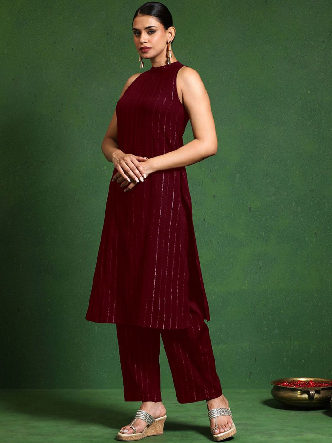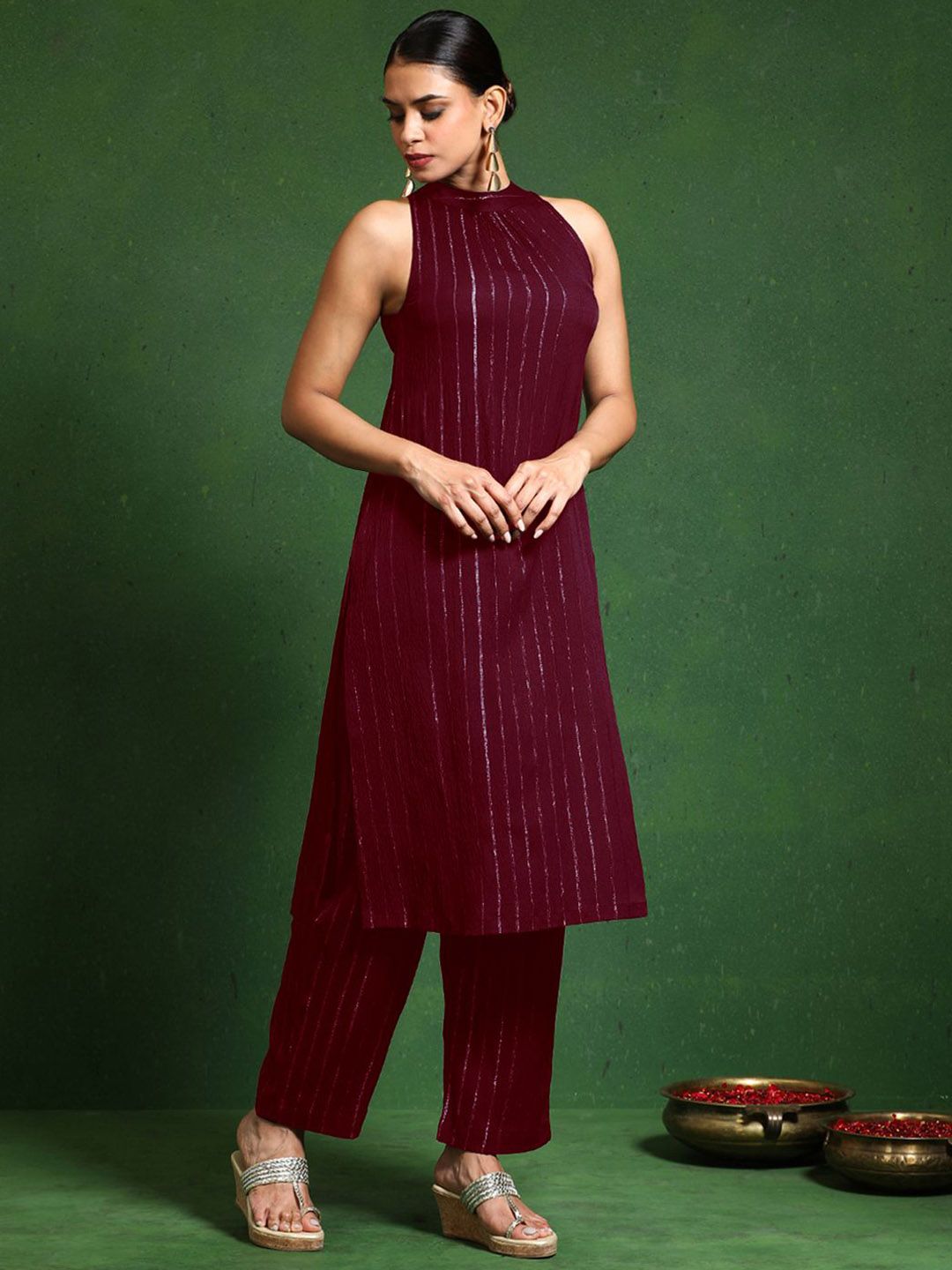 Varanga Women Striped Woven Design Kurta with Trousers