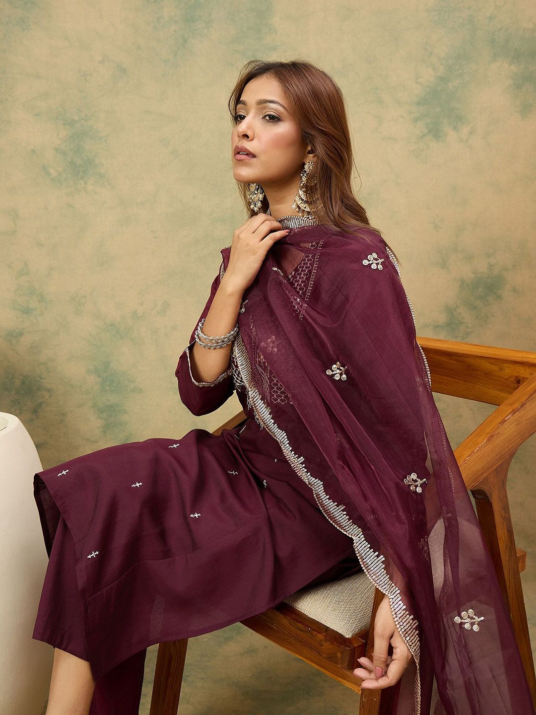 Varanga Yoke or Border Embroidered Zari Straight Kurta With Trousers & Dupatta
