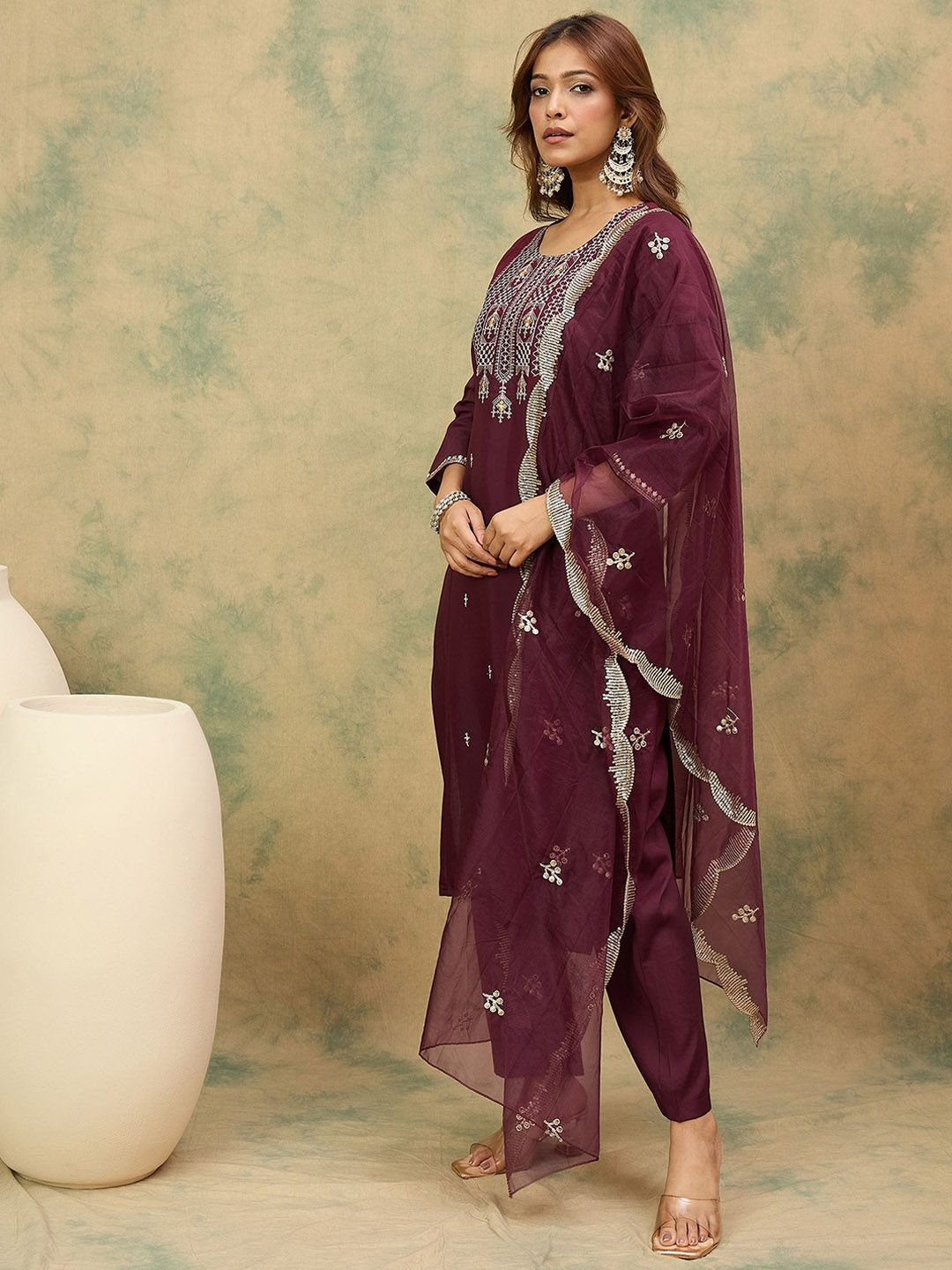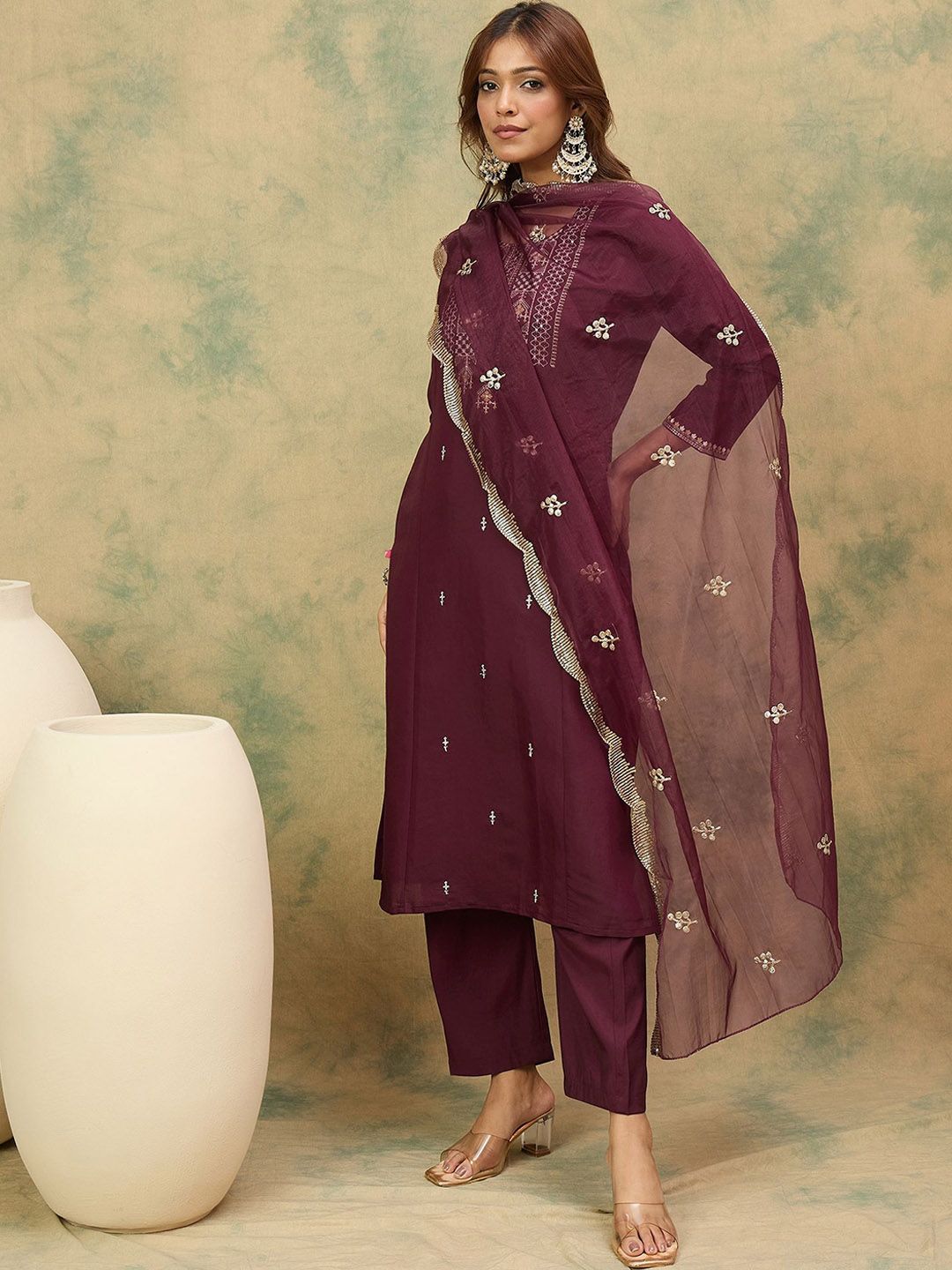 Buy this stylish Varanga Yoke or Border Embroidered Zari Straight Kurta With Trousers & Dupatta at Marincart Nepal. This product offers great quality and value. Perfect for those looking for the latest trends in fashion. Get yours now at unbeatable prices.