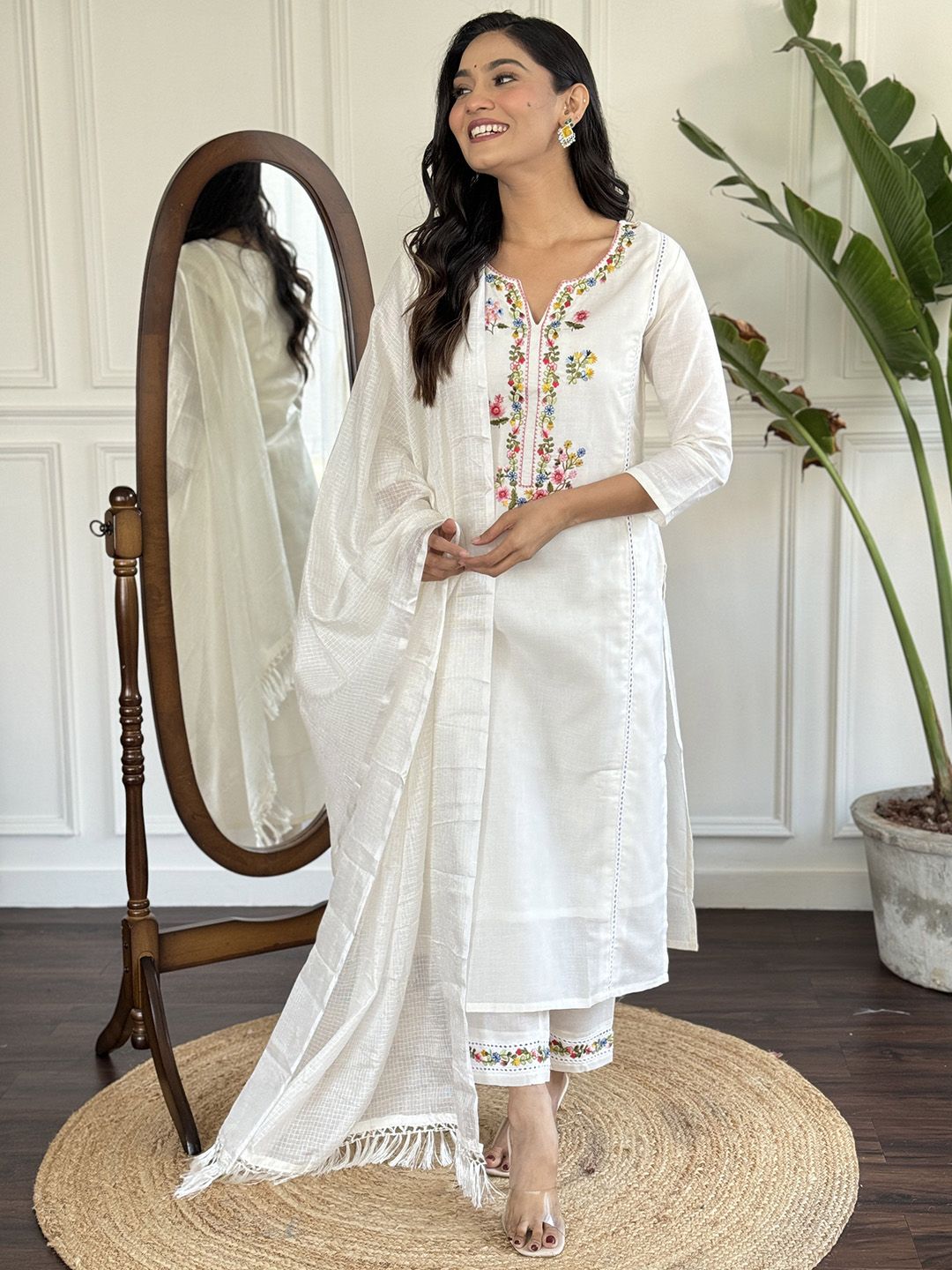 VARNI FABRICS Women Floral Embroidered Kurta with Trousers & Dupatta