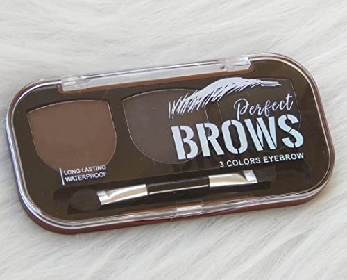 VARS ; LONDON Perfect brows 3 colors eyebrow powder + black, brown, dark brown, grey eyebrow combo makeup palette (SHADE B)