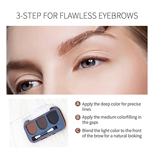 This eyebrow makeup kit contains everything you need to create the perfect eyebrows, made to be used by makeup beginners or professionals of all ages. With Three different eyebrow powder shades for blondes, redheads, brunettes, and dark-haired beauties. Use the dual ended eyebrow pencils to get more thin and precise lines. Contains a dual-ended brush with angled bristles and spoolie to shape and comb out your brows or go easy with our dual-ended brow powder in clear and medium brown tint. palette is a matte and lightweight powder that is formulated to help fill in sparse hair for your eyebrows and hairline. This fully pigmented and water-resistant powder will keep your brows and hairline looking full and natural For Brows: Using your favorite eyebrow brush, fill in brows using a flicking motion. For Hairline: Use a blending brush in circular motions to sweep product upward into your hairline filling in sparse areas along the hairline.
