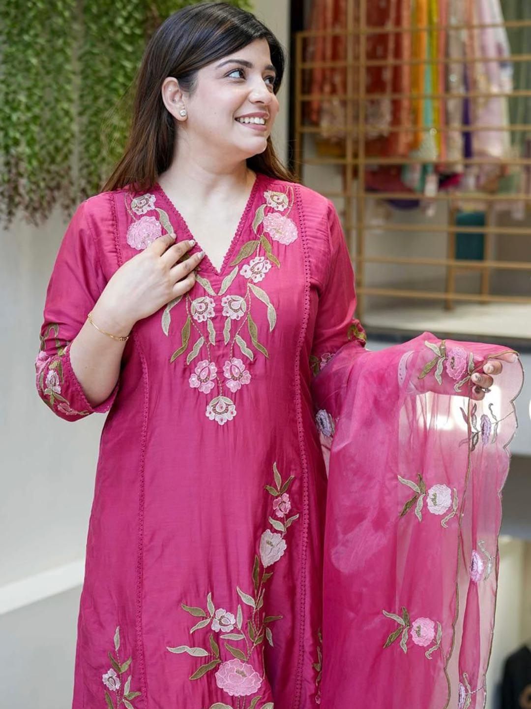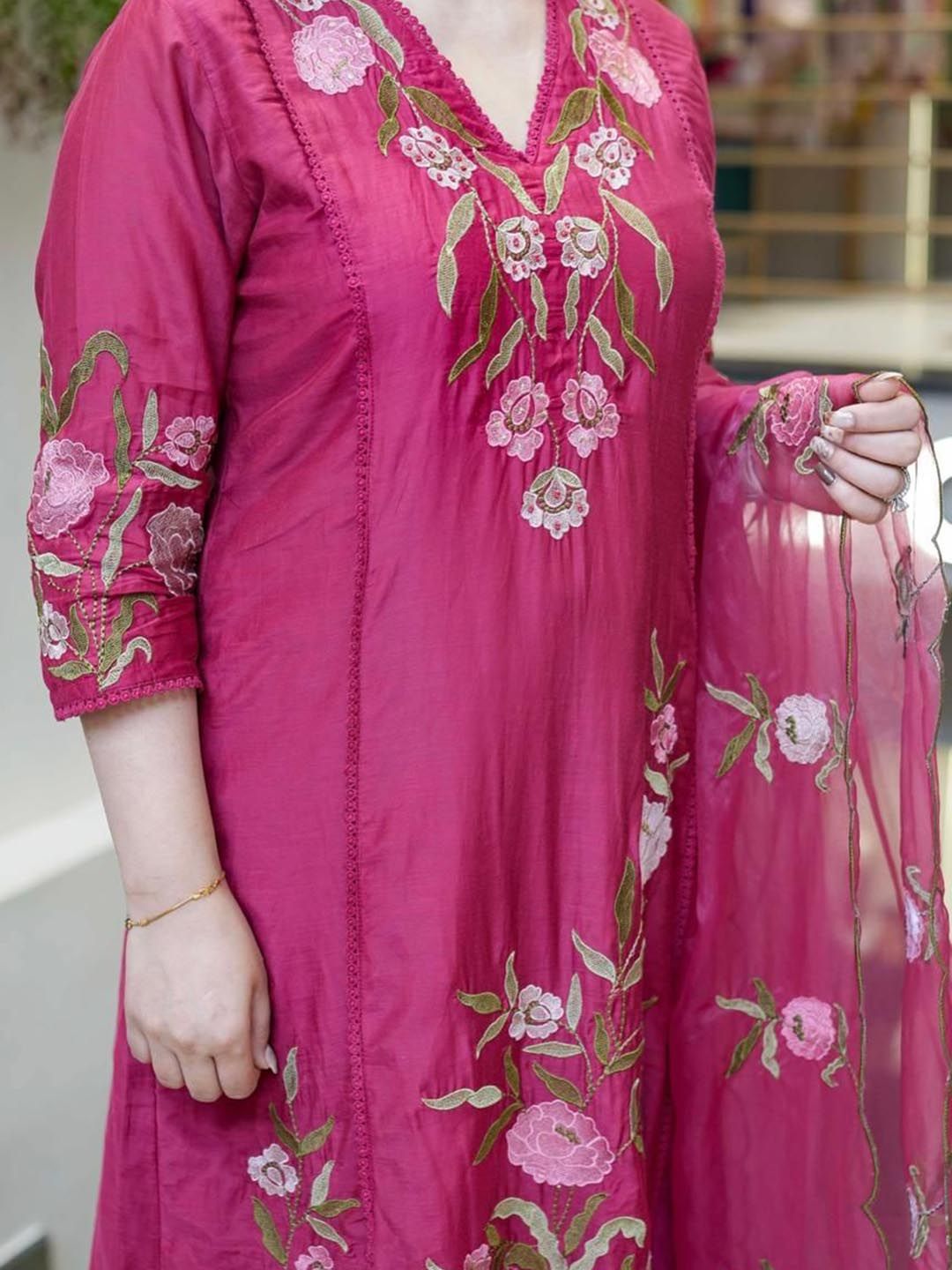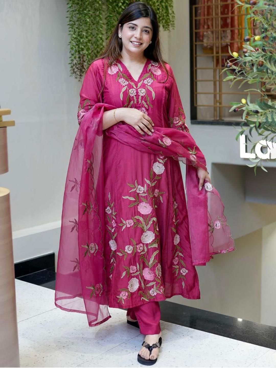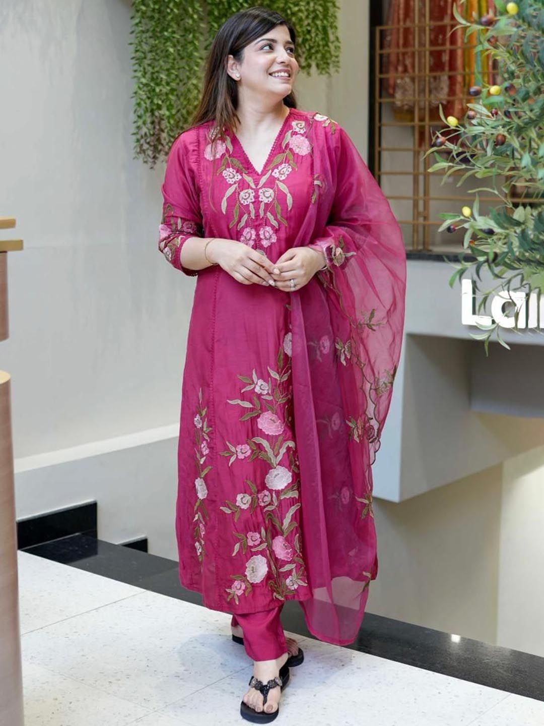 VASTRAHUT Women Floral Embroidered A-Line Kurta with Trousers & Dupatta