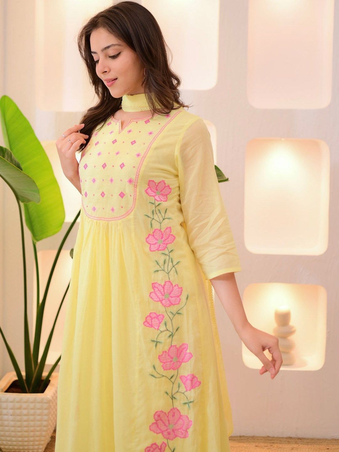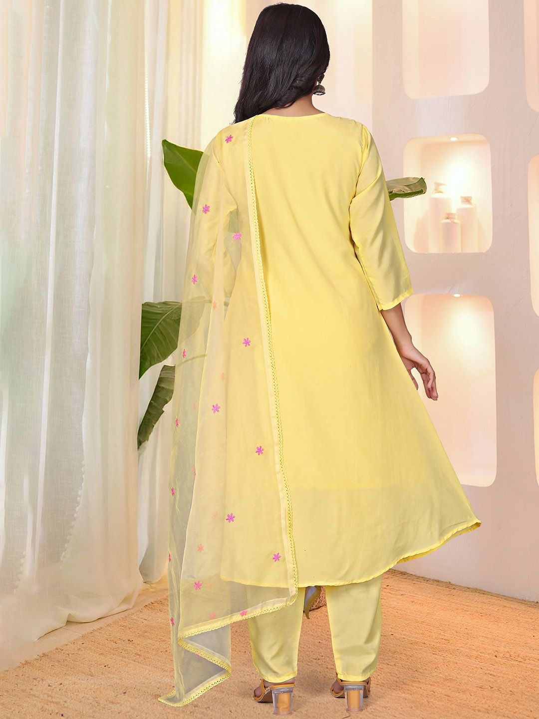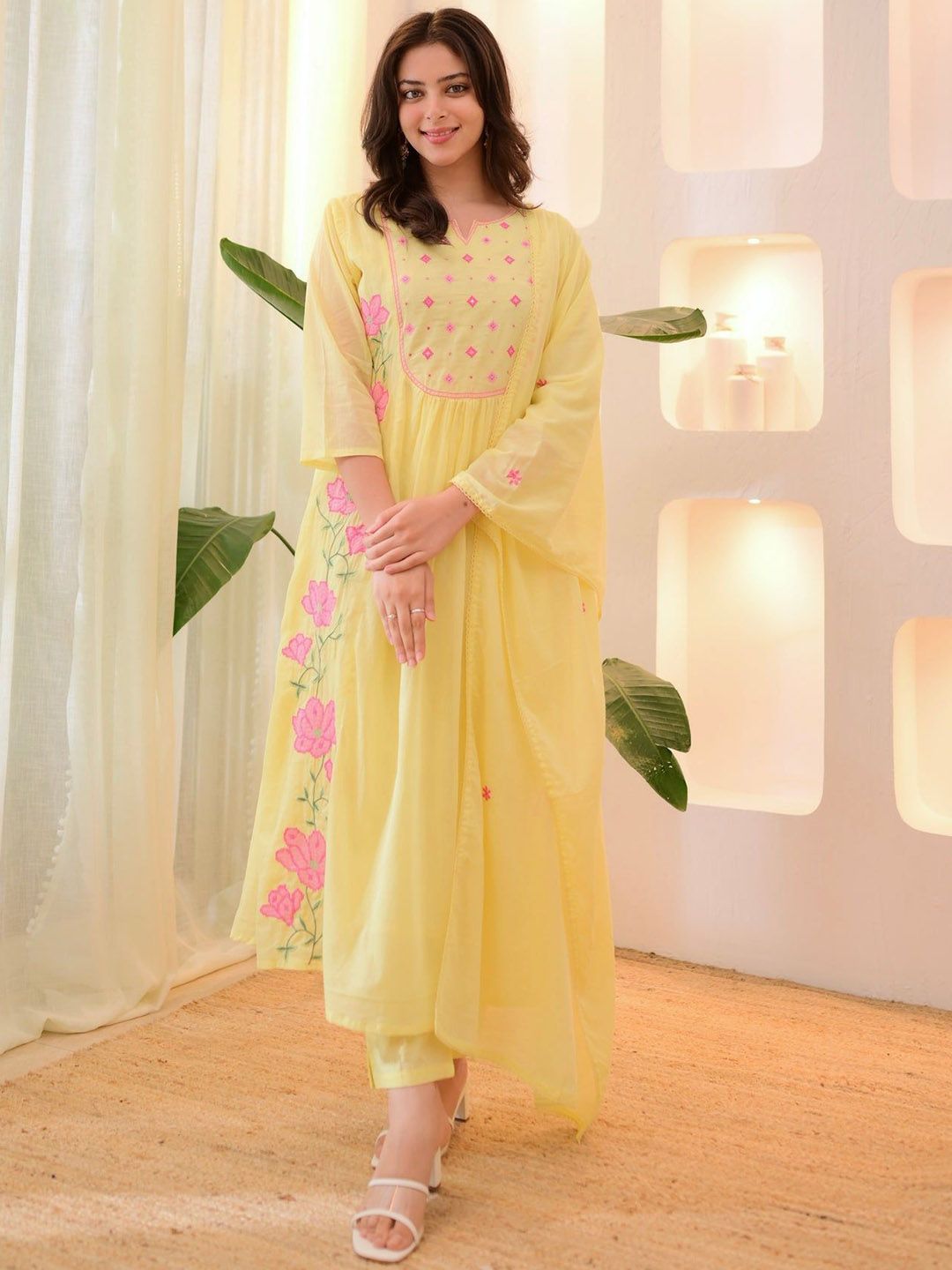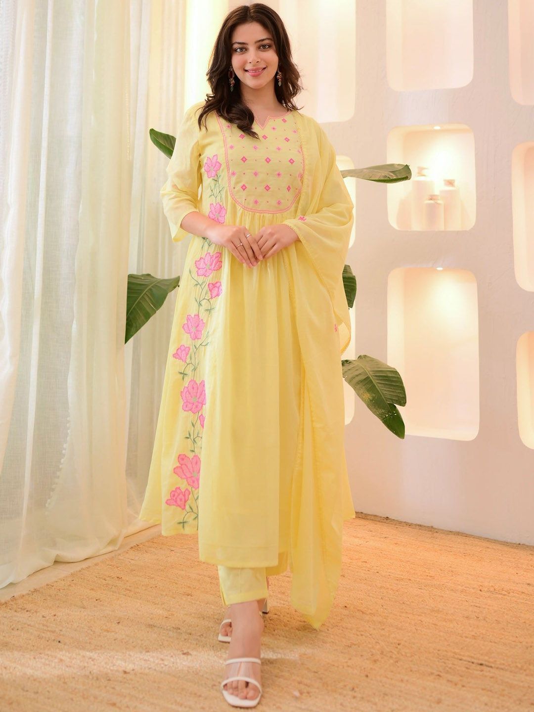 VASTRAHUT Women Floral Embroidered V-Neck Kurta with Trousers & Dupatta