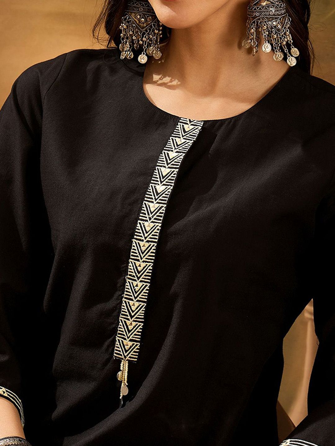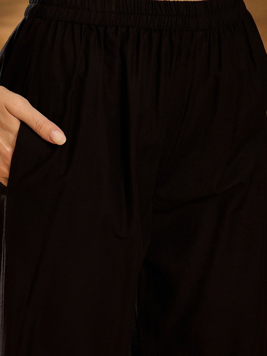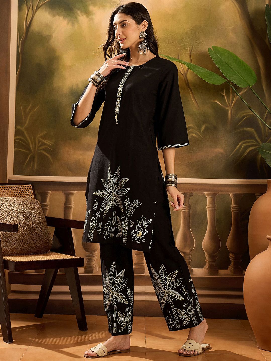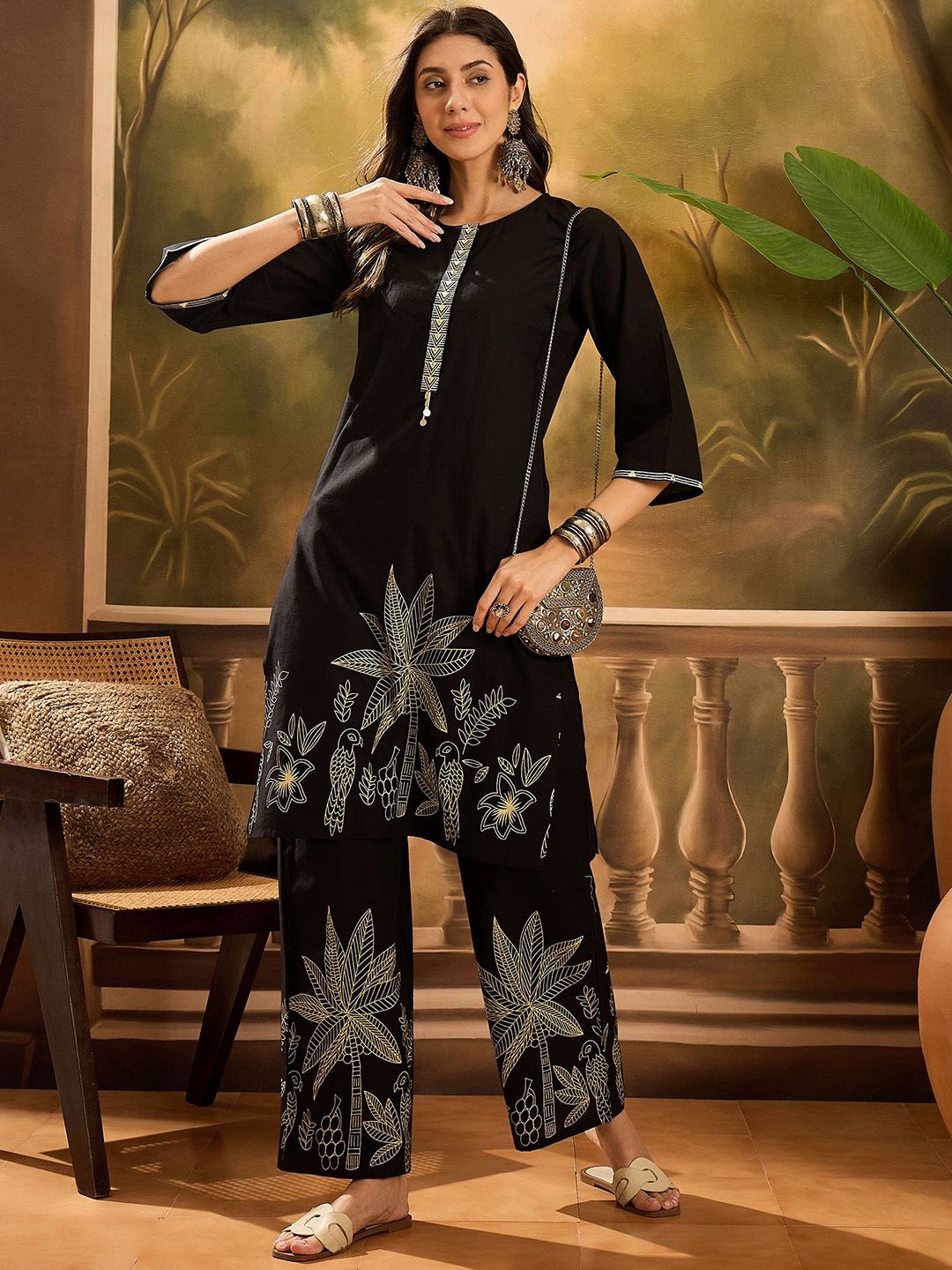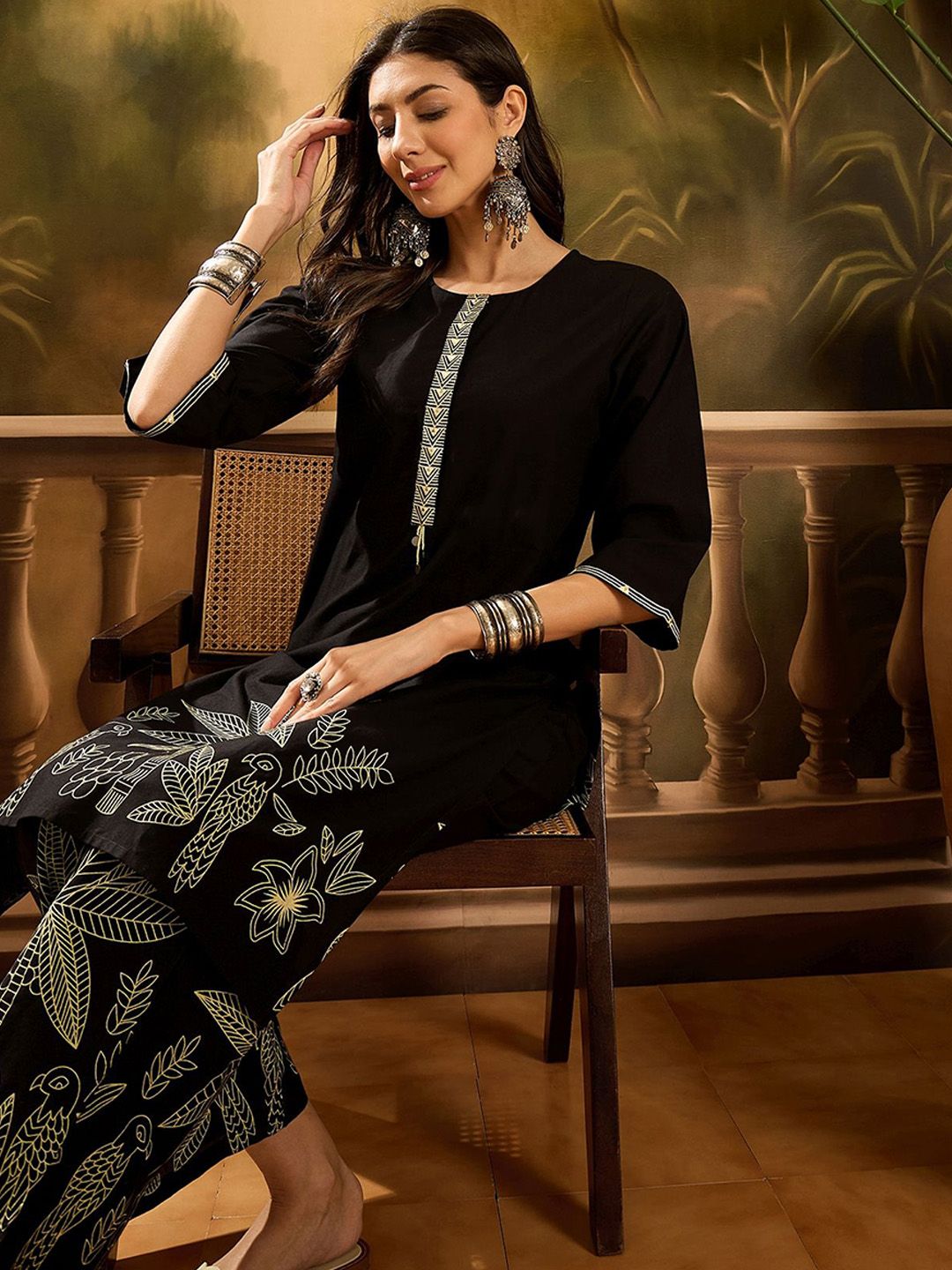 Vastramyaa Floral Printed Thread Work Pure Cotton Straight Kurta With Palazzos