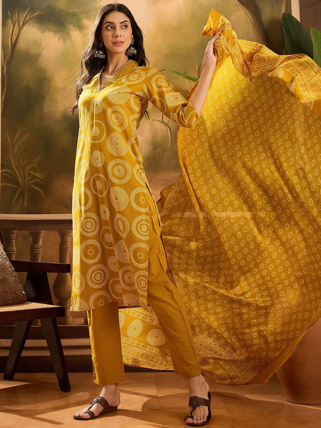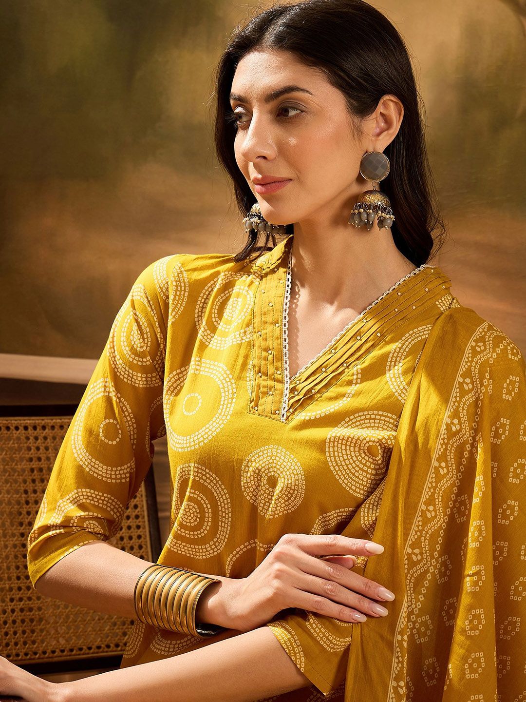Buy this stylish Vastramyaa Women Bandhani Print Beads and Stones Pure Cotton Kurta with Trousers & Dupatta at Marincart Nepal. This product offers great quality and value. Perfect for those looking for the latest trends in fashion. Get yours now at unbeatable prices.