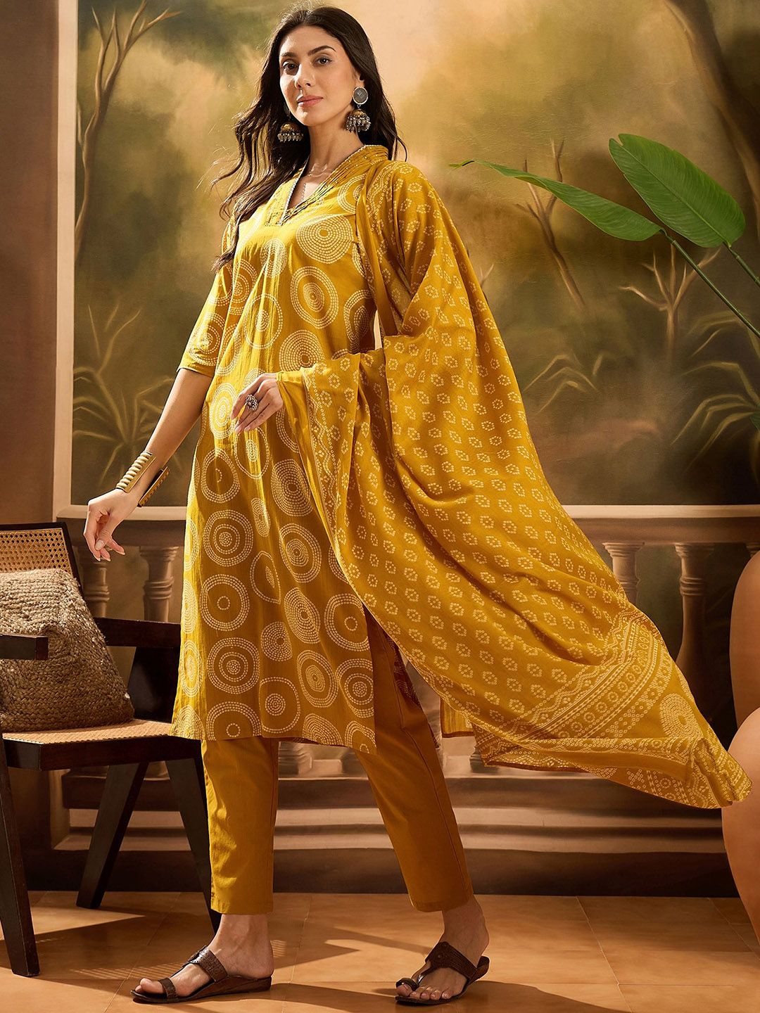 Vastramyaa Women Bandhani Print Beads and Stones Pure Cotton Kurta with Trousers & Dupatta
